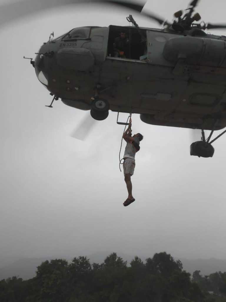 मुंबई- महाराष्ट्रातील पूरग्रस्तांना मदत करण्यासाठी भारतीय वायुसेनेची दोन हेलिकॉप्टर तैनात आहेत. चिपळूण येथे पुरात अडकलेल्या दोन व्यक्तींची एका हेलिकॉप्टरमधून सुटका करण्यात आली. तर दुसऱ्या हेलिकॉप्टर मधून एनडीआरएफचे जवान आणि इतर सामुग्री रत्नागिरीला पोहचविण्यात आली.