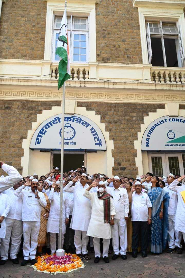 मुंबई -राष्ट्रवादी काँग्रेस पक्षाचा २३ वा वर्धापन दिन आज मोठ्या उत्साहात साजरा होत आहे. पक्षाचे प्रदेशाध्यक्ष जयंत पाटील यांच्या हस्ते आज राष्ट्रवादी भवन, मुंबई येथे १० वाजून १० मिनिटांनी ध्वजारोहण करण्यात आले. कार्यकर्त्यांच्या एकजुटीने पक्षाला मिळालेल्या उभारीबद्दल जयंत पाटील यांनी सर्वांचे यावेळी आभार मानले. आपला पक्ष तेवीस वर्षांचा झाला आहे. आपल्या पक्षामध्ये महाराष्ट्रातील नव्या पिढीला भविष्यातील आशा दिसत आहे. अनेक तरूण पक्षात काम करण्यास इच्छुक आहेत. शरद पवार यांच्या नेतृत्वाखाली पक्षाचे काम सुरु आहे, हे पक्ष वाढण्याचे एकमेव कारण आहे, असे जयंत पाटील म्हणाले.
