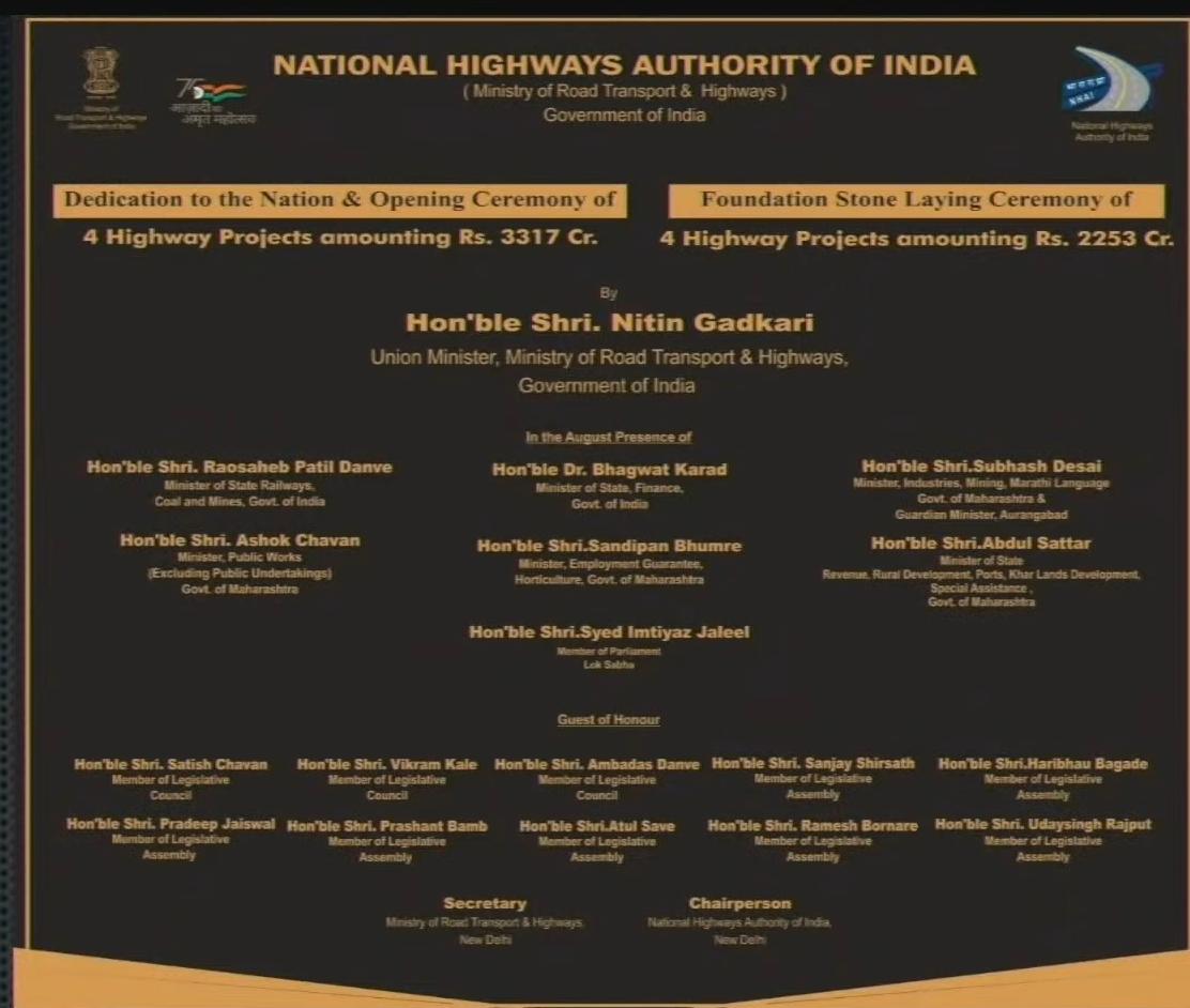 या कार्यक्रमाला औरंगाबाद शहरातील स्थानिक लोकप्रतिनिधी, राष्ट्रीय महामार्ग प्राधिकरणाचे प्रादेशिक अधिकारी राजेश अग्रवाल, राष्ट्रीय महामार्ग प्राधिकरणाचे अधिकारी, औरंगाबाद शहरातील नागरिक मोठ्या संख्येने उपस्थित होते