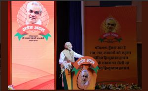 नवी दिल्ली -भाजपाच्या दिल्लीत झालेल्या राष्ट्रीय कार्यकारिणी बैठकीच्या शेवटच्या दिवशी आज पंतप्रधान नरेंद्र मोदी यांनी विरोधी पक्षांवर तिखट शब्दांत टीका केली. ‘अजेय भारत, अटल भाजपा’ अशी नवीन घोषणा त्यांनी यावेळी दिली. ही घोषणा दिवंगत नेते अटलबिहारी वाजपेयी यांना समर्पित असल्याचे ते म्हणाले. भाजपा अध्यक्ष अमित शाह यांनी २०१९ मध्ये भाजपाचा पुन्हा विजय होईल आणि पुढील ५० वर्षे भाजपाला कोणीच पराभूत करू शकणार नाही, असा विश्वास व्यक्त केला. कार्यकारिणीच्या बैठकीनंतर केंद्रीय मंत्री रवीशंकर प्रसाद यांनी पत्रकार परिषदेत पंतप्रधान मोदी आणि अमित शाह यांच्या भाषणातील सारांश सांगितला.