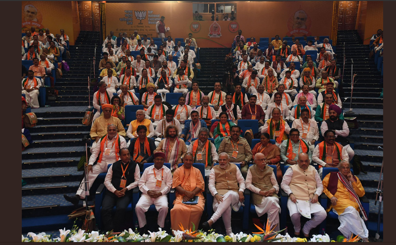 अमित शाह यांनी कार्यकर्त्यांना संबोधित करताना २०१९ मध्येही विजयाचा भरवसा दिला. आम्ही २०१९ मध्ये तर जिंकूच त्यानंतर ५० वर्षे आम्हाला कोणी हटवू शकणार नाही, असेही ते म्हणाले. मोदींनी आपल्या भाषणाच्या सुरूवातीलाच अटलबिहारी वाजपेयी यांना श्रद्धांजली वाहिली.