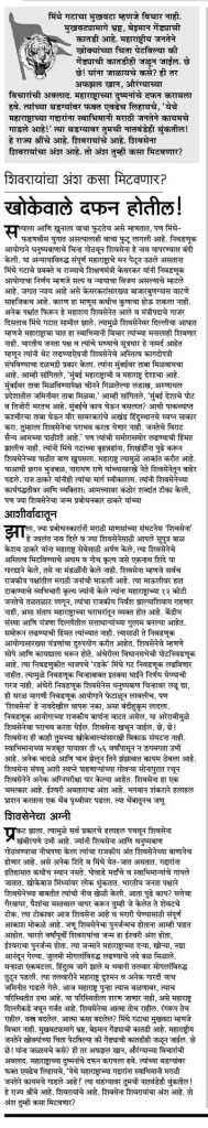 ठाकरे गटाने म्हटले आहे की, चारशे वर्षांपूर्वी शिवरायांचा जन्म हा ईश्वरी अंश होता. त्या जन्माने महाराष्ट्राच्या दऱ्या, खोऱ्या, नद्या आनंदून गेल्या. जुलमी मोगलांविरुद्ध लढण्याचे नवे बळ मिळाले. मऱ्हाठा एकवटला. भवानी तलवार मोगलांविरुद्ध तुटून पडली. त्या तलवारीने महाराष्ट्र दुश्मन व अनेक गारदी याच जमिनीत गाडले गेले. आज महाराष्ट्र पुन्हा त्याच वळणावर, त्याच परिस्थितीत उभा आहे. या परिस्थितीला शरण जाणार नाही, असे महाराष्ट्र दिल्लीकडे बघून गर्जत आहे. शिवसेनेचा आत्मा तोच राहील. रंगरूप तेच राहील. वस्त्र बदलेल. आत्मा कसा बदलेल? शिवसेना शिवरायांचा अंश आहे.