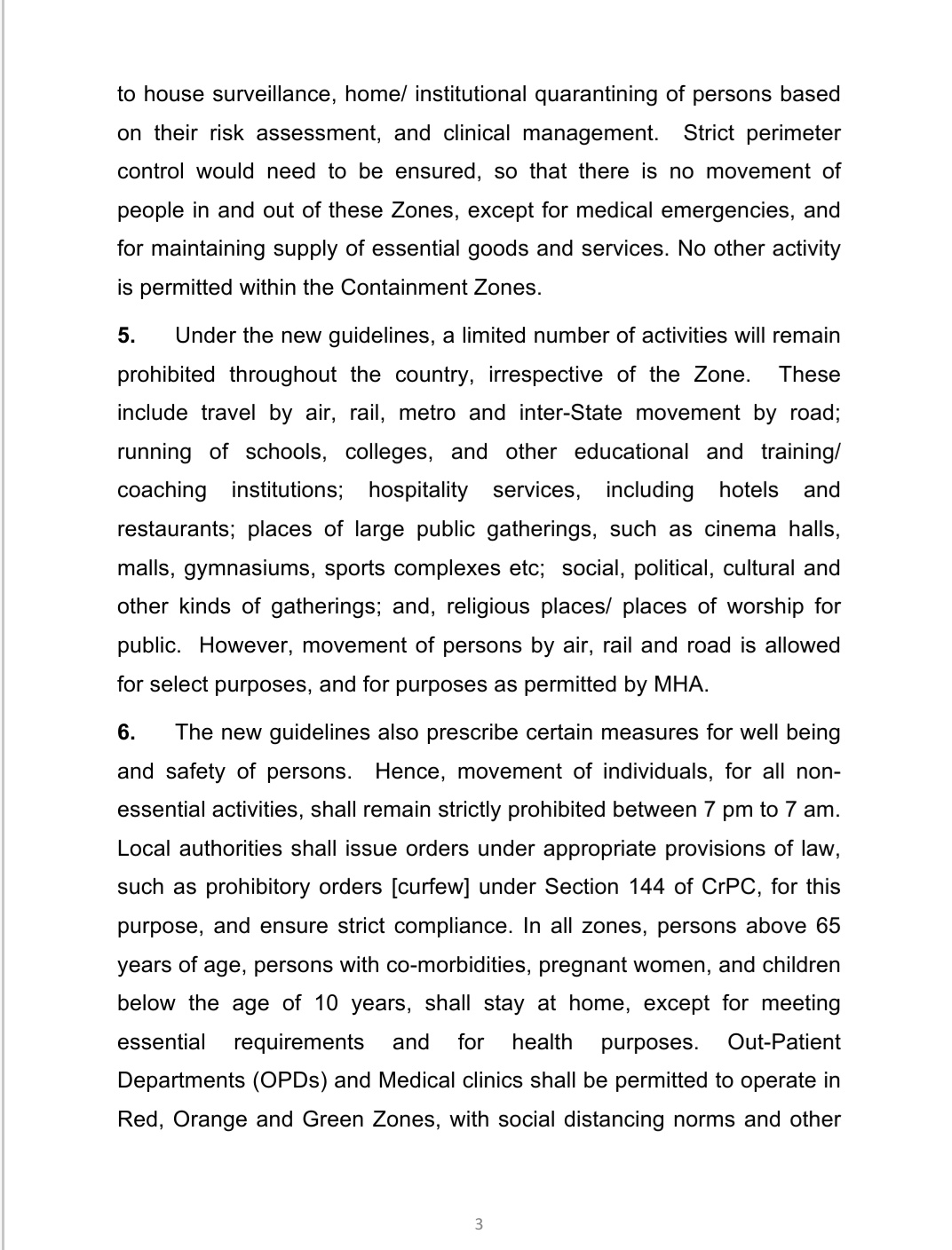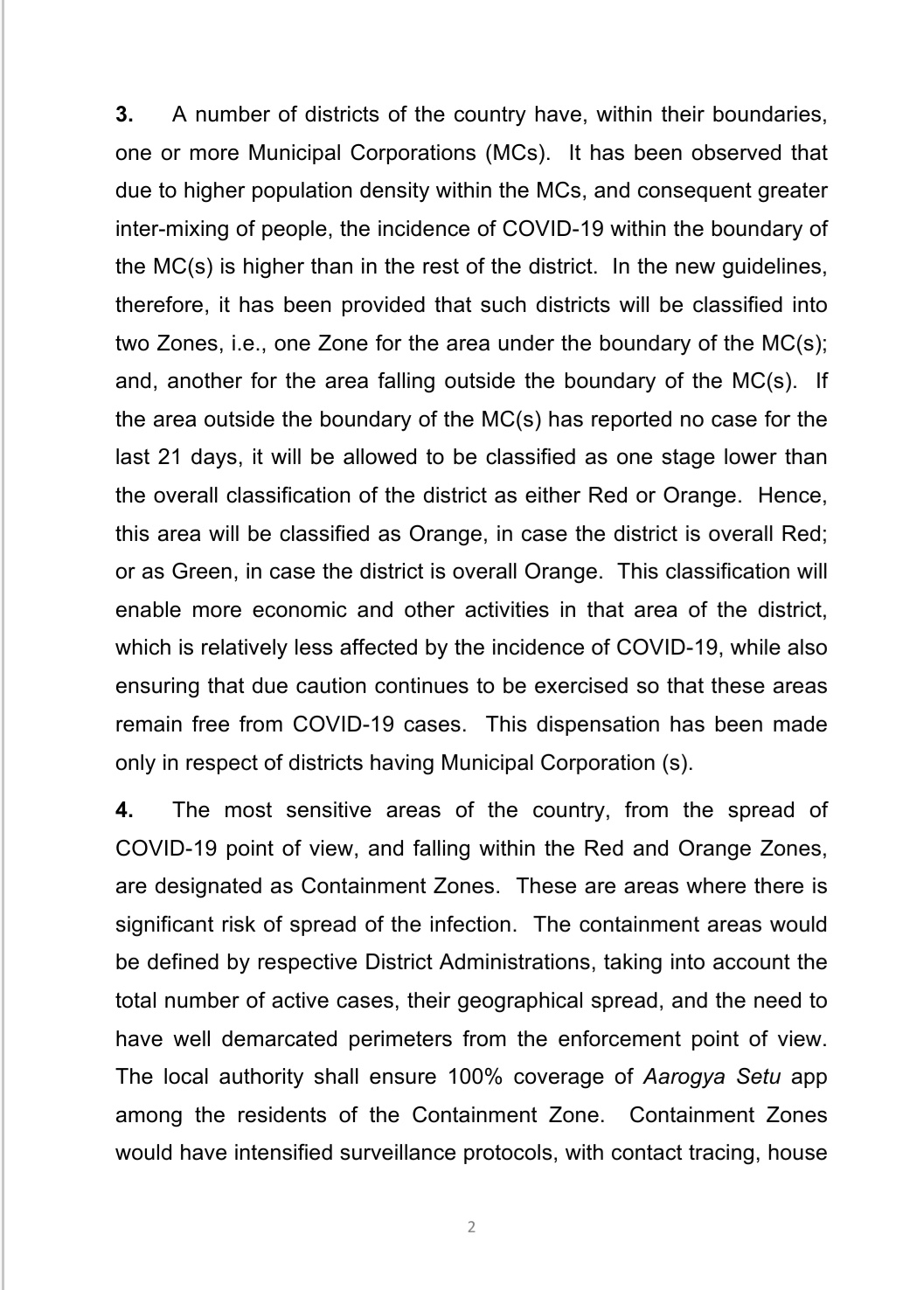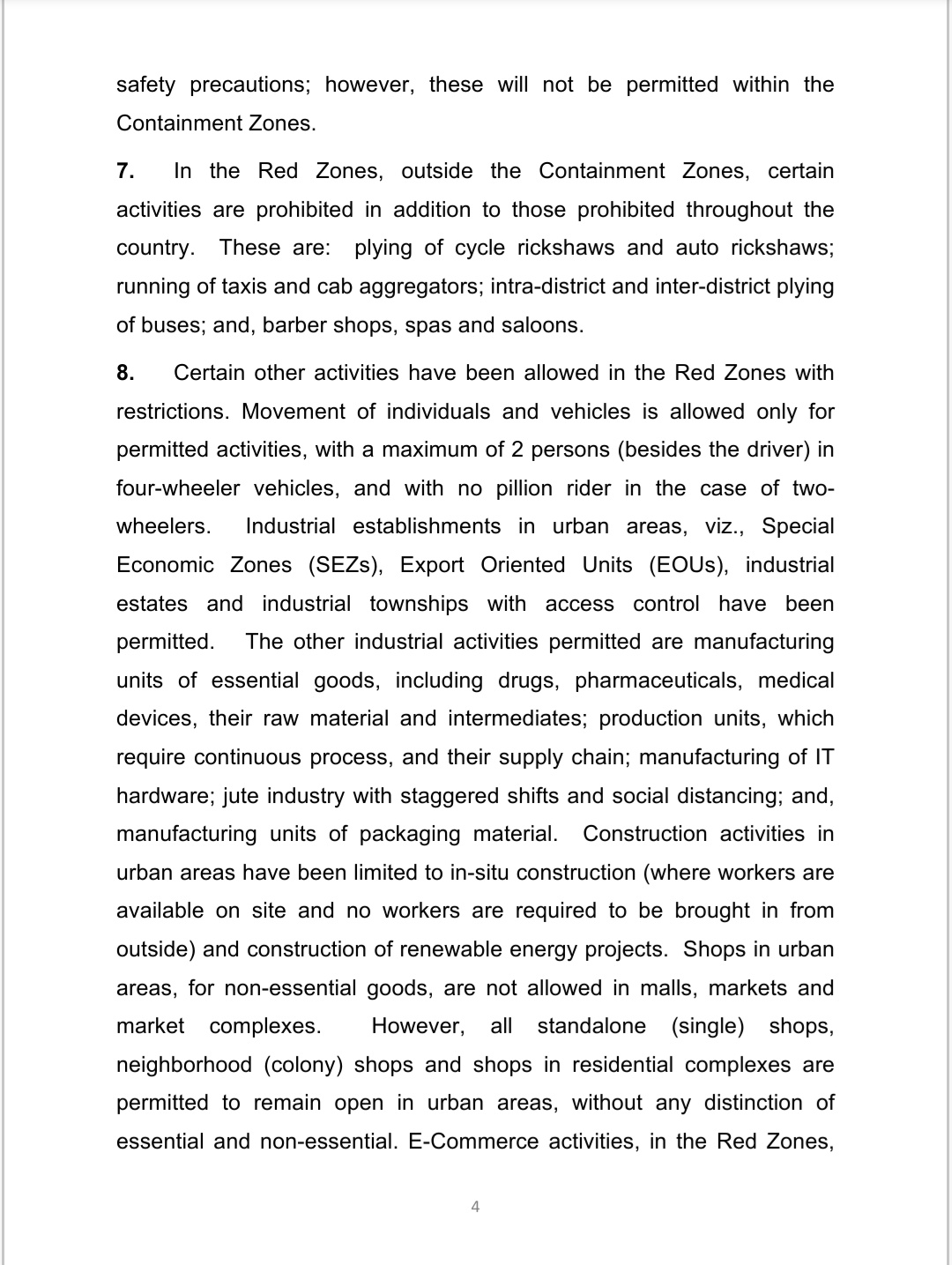 दरम्यान, हा लॉकडाउन लागू करताना सरकारनं ग्रीन आणि ऑरेंज झोनमध्ये सशर्त काही सवलती देण्यात येतील. परंतु रेड झोनमध्ये कोणतीही सवलत देण्यात येणार नसल्याचं सरकारनं स्पष्ट केलं आहे. रेड झोन, ऑरेंज झोन आणि ग्रीन झोन्ससाठी नव्या गृहमत्रालयानं काही नव्या गाईडलाइन्सही जारी केल्या आहेत. ग्रीन झोन्समध्ये करोनाचा एकही रुग्ण नाही किंवा २१ दिवसांमध्ये करोनाचा एक नवा रुग्ण सापडला नाही, अशा भागांचा समावेश करण्यात आला आहे. तसंच ज्या जिल्ह्यांचा समावेश रेड किंवा ग्रीन झोनमध्ये नसेल ते जिल्हे ऑरेंज झोनमध्ये सामिल करण्यात येणार असल्याचं स्पष्ट करण्यात आलं आहे.