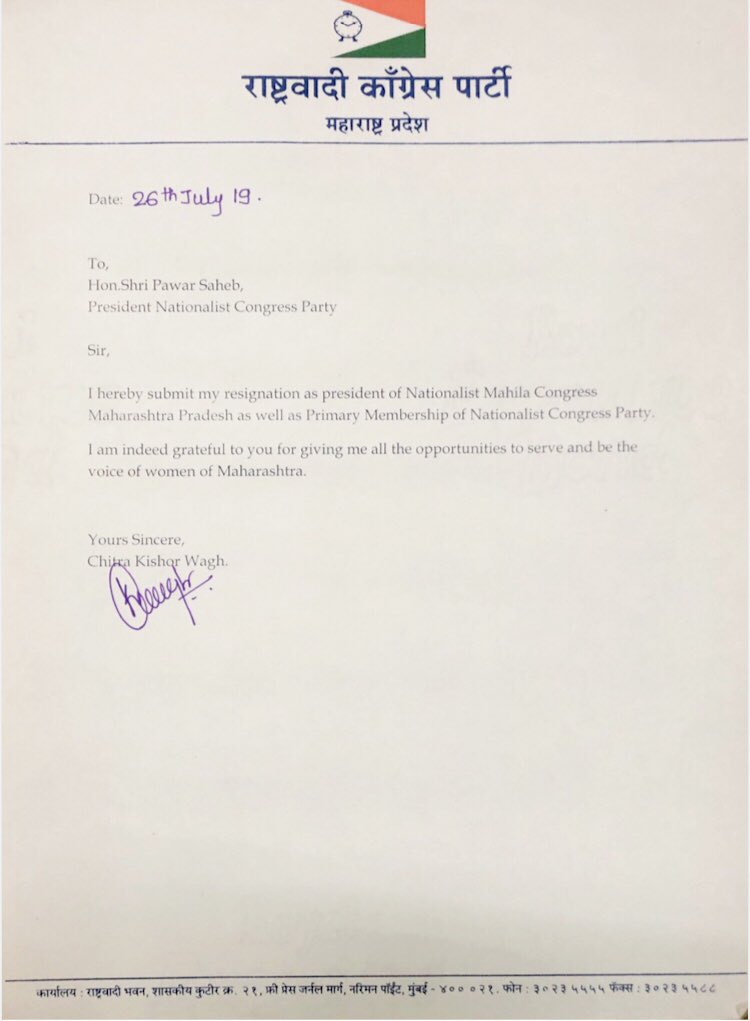 पुणे: राष्ट्रवादी महिला आघाडीच्या प्रदेशाध्यक्षा चित्रा वाघ यांनी आपल्या पदांचा राजीनामा दिला आहे. त्या लवकरच भाजप प्रवेश करणार आहेत. ..