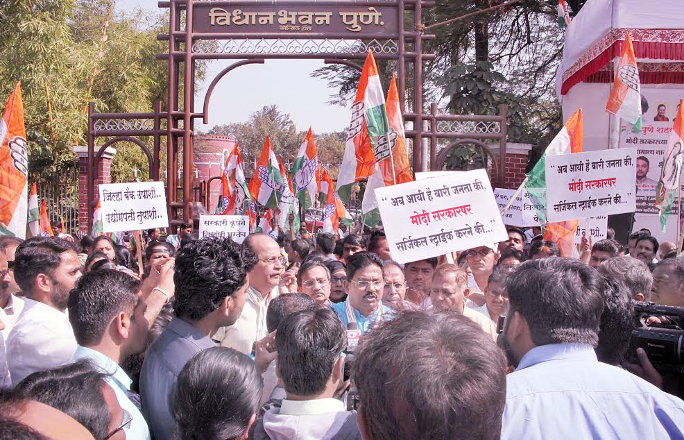 पुणे – नोटाबंदीचा निर्णय होऊन ५० दिवसाचा कालावधी उलटूनसुद्धा सर्वसामान्यांना दिलासा मिळाला नाही. या विरोधात पुणे शहर जिल्हा काँग्रेस कमिटीच्या वतीने जिल्हाधिकारी कार्यालयाला घेराव घालण्यात आला यावेळी कार्यकर्ते, नेते मोठ्या संख्येने उपस्थित होते.