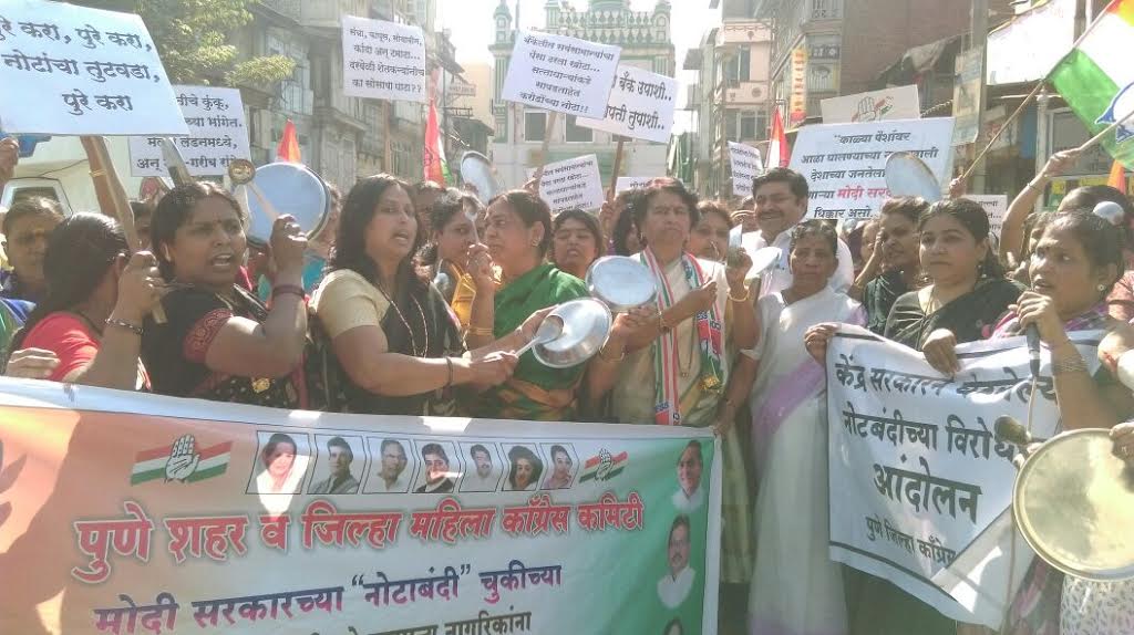 पुणे -नोटाबंदीच्या निर्णयामुळे नागरिकांना होत असलेल्या त्रासाच्या विरोधात शहरातील विविध चौकात अंदोलन करण्यात आले. केंद्र सरकारच्या निर्णयाला ६१ दिवस उलटून देखील अर्थव्यवस्था ठप्प आाहे. बँका बाहेरील गर्दी कमी होत नाही. सरकारच्या चुकीमुळे जनसामान्यांना झालेल्या त्रासाच्या विरोधात एनएसयूआई व सेवादलाच्यावतीने नरपतगिरी चौक, स्टेशन येथे आंदोलन करण्यात आले. काँग्रेस महिला आघाडीच्या वतीने बोहरी आळी चौकात आंदोलन करण्यात आले. पुणे युवा काँग्रेसच्यावतीने अलका टॉकीज येथे आंदोलन करण्यात आले. यावेळी मोठय़ा प्रमाणात काँग्रेसचे कार्यकर्ते उपस्थित होते. मोदी सरकारच्या नोटाबंदीच्याविरोधात यावेळी मोठय़ा प्रमाणात घोषणाबाजी करण्यात आली.