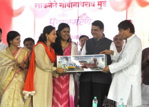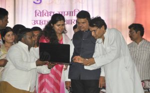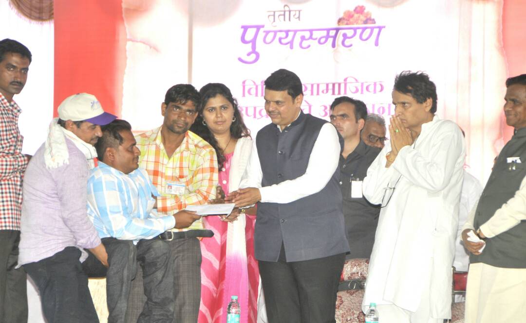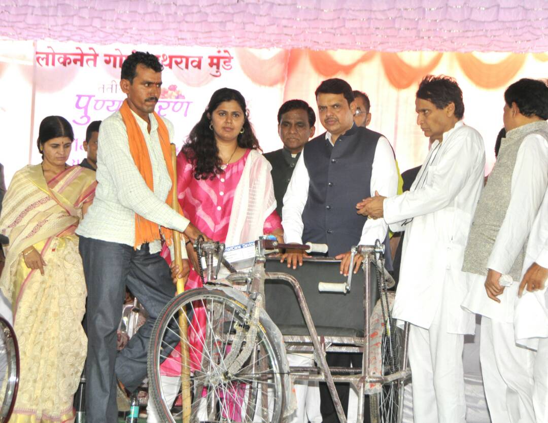 यावेळी अपंगांना साहित्यांचे वाटप, बचत गटांना आर्थिक मदत, पंतप्रधान उज्ज्वला गॅस योजने अंतर्गत 1792 जणांना मदत, ऊसतोड कामगारांच्या उच्च शिक्षण घेणाऱ्या मुलांना आर्थिक मदत, समाजकल्याण विभागातर्फे सदृढ व्यक्तीकडून दिव्यांग व्यक्तीशी विवाह केलेल्या जोडप्यांना 24 हजार रुपयांचा धनादेश देणे, मुख्यमंत्री साहायता निधीतून पाच जणांना मदत मुख्यमंत्र्यांच्या हस्ते करण्यात आली. यावेळी पंडित दीनदयाल आरोग्य शिबीराच्या पुस्तिकेचे विमोचनही मुख्यमंत्र्यांच्या हस्ते करण्यात आले. या कार्यक्रमाचे सूत्रसंचालन खा. प्रीतमताई मुंडे यांनी केले. या समारंभाला राज्यभरातून नागरिक उपस्थित होते.