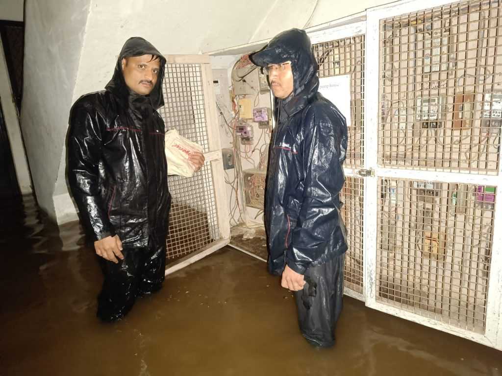 पुणे -: पुणे शहर व परिसरात सोमवारी (दि. १७) रात्री नऊच्या सुमारास ढगफुटी सदृश्य मुसळधार पाऊस झाला. काही वेळातच सखल भागामध्ये पाणी साचले. घरांमध्ये तसेच सोसायट्यांमध्ये पाणी शिरले. परिणामी महावितरणच्या वीजयंत्रणेला तडाखा बसला. यामध्ये प्रामुख्याने रास्तापेठ व पद्मावतीसह पर्वती, बंडगार्डन विभागामधील २२ केव्ही क्षमतेच्या ११ वाहिन्यांचा वीजपुरवठा खंडित झाला होता. महावितरणचे अभियंते व कर्मचाऱ्यांना रात्रभर पावसात दुरुस्ती कामाला वेग देत पहाटेपर्यंत टप्प्याटप्प्याने सर्वच ११ वीजवाहिन्यांचा वीजपुरवठा सुरु केला. तसेच सकाळी १० वाजेपर्यंत जलमय परिसरातील ९९ टक्के ग्राहकांचा वीजपुरवठा पूर्ववत करण्यात आला. दुपारी ४ वाजेपर्यंत उर्वरित ग्राहकांकडील वीजपुरवठा टप्प्याटप्प्याने पूर्ववत करण्यात येत आहे.