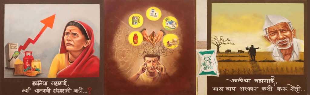 विवेक वेलणकर म्हणाले, “महागाईमुळे देशातील जनतेला जगणेही महाग झाले आहे. चित्रकलेच्या, रांगोळीच्या माध्यमातून सामान्य माणसांच्या महागाईविषयीच्या तीव्र भावना रेखाटलेल्या आहेत. पेट्रोल, डिझेलसह अन्य वस्तूंच्या वाढलेल्या किंमती सामान्यांसाठी अन्यायकारक आहेत. केंद्र व राज्य सरकारने महागाई कमी करण्यासाठी प्रयत्न करणे आवश्यक आहे.”