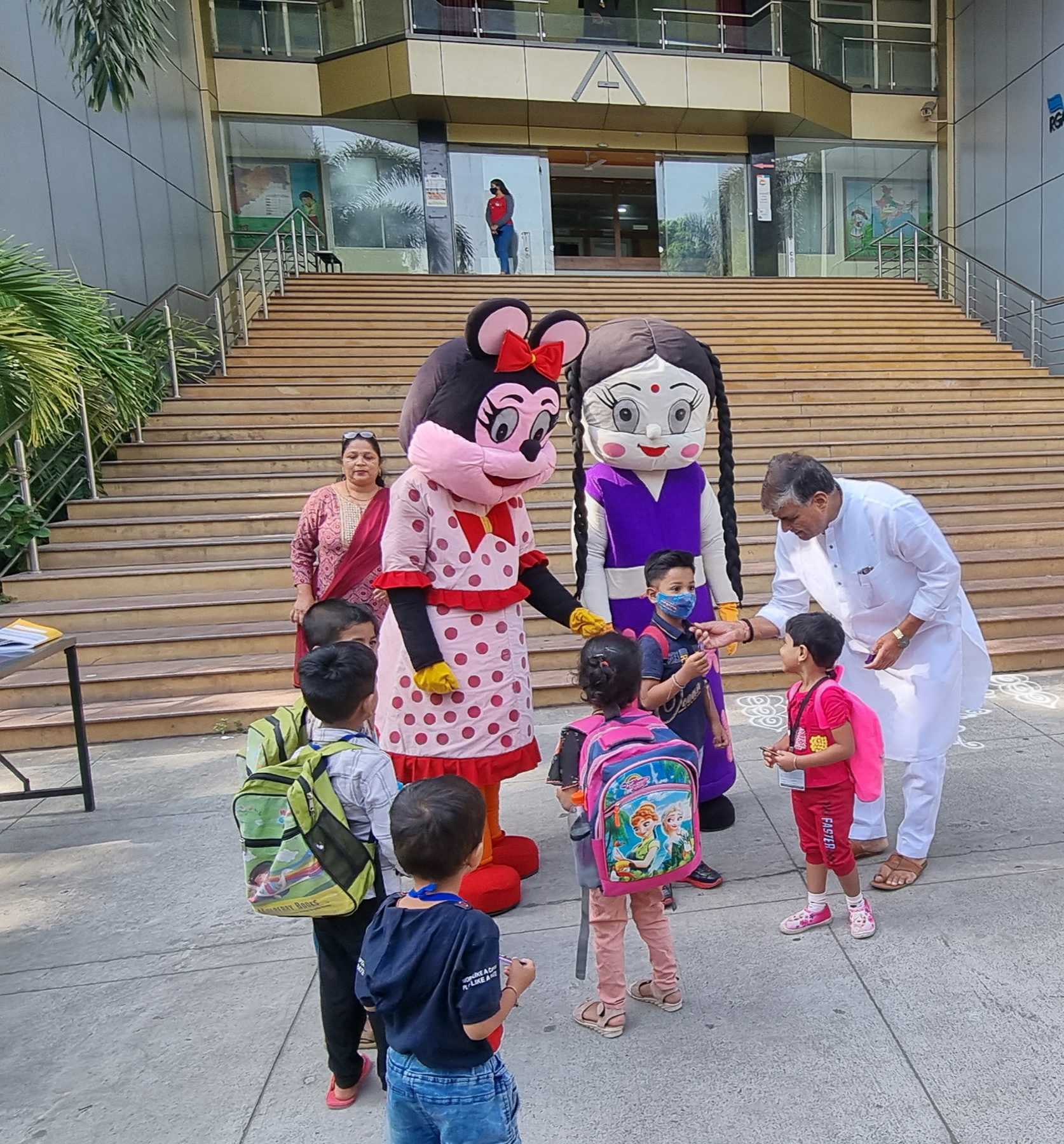 पुणे – शाळेच्या आवारातच मिकी-माऊस, डोरो मन,चुटकी…गाण्याच्या सुरात स्वागत..प्रथमच शाळेत आलेल्या चिमुकल्यांनी आई-बाबांचे बोट सोडले आणि आनंदात हरपले, हे चित्र राजीव गांधी ई-लर्निंग स्कुलमध्ये सोमवारी पाहावयास मिळाले. विशेष म्हणजे आयुष्यातील शाळेच्या पहिल्याच दिवशी या चिमुकल्यांच्या चेहऱ्यावरची भीती दूर झाल्याने पालकांचे चेहरेही आनंदाने फुलले.