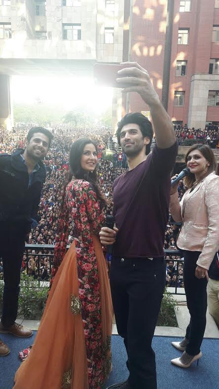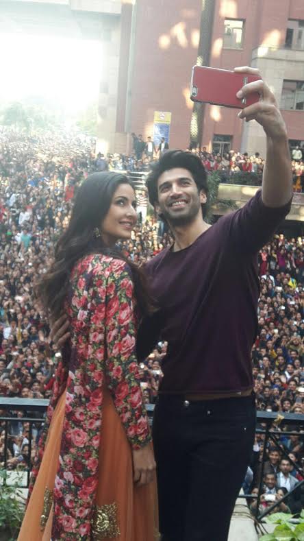 दिल्ली – फितूर या हिंदी सिनेमाचे प्रमोशन करायला दिल्लीत गेलेल्या आदित्य रॉय कपूर आणि कटरीना कैफ हे अमिती महाविद्यालयात तरुणाईने दिलेला प्रचंड प्रतिसाद पाहून हरखून गेले. नेहमीच यांच्यासमवेत फोटो काढण्यासाठी धडपड करणाऱ्या चाहत्यांऐवजी या गर्दीसमवेत हे हिरो आणि हीरोईन स्वतःचे सेल्फी काढण्यासाठी धडपडत होते . पहा फोटो ..