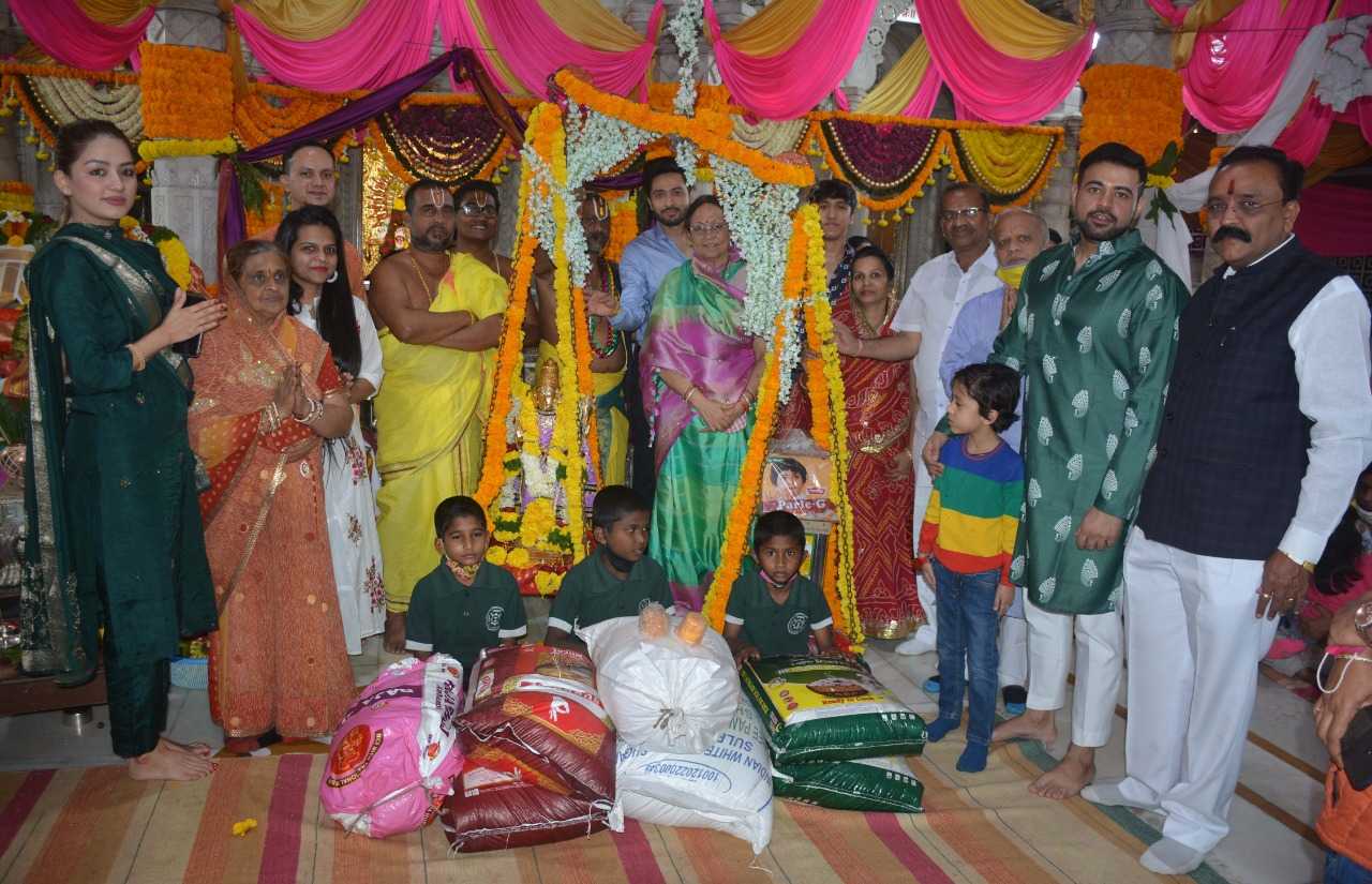 अमिता अग्रवाल म्हणाल्या, सामाजिक कार्यक्रमांमध्ये मंदिरातील उत्सव मूर्तीची धान्यतुला करुन ते धान्य वाघोली येथील संतुलन पाषाण या दगडखाण कामगारांच्या मुलांसाठी काम करणा-या संस्थेस देण्याचा उपक्रम राबविण्यात आला. धान्यतुलेमध्ये विविध प्रकारचे धान्य, बिस्कीटे व खाऊ ठेवण्यात आला होता. याशिवाय सोने व चांदीची फुले देखील मान्यवरांच्या हस्ते उत्सवमूर्तीला अर्पण करण्यात आली.