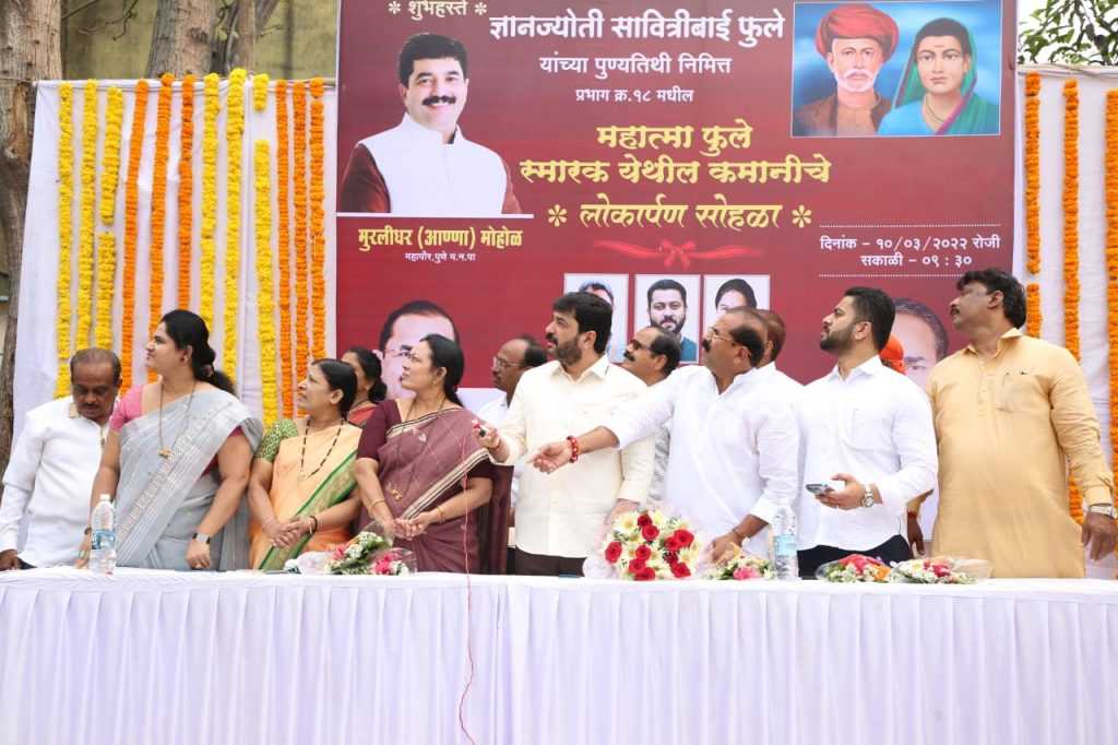 महाराष्ट्रातील स्त्री शिक्षणाची मुहूर्तमेढ रोवणाऱ्या क्रांतीज्योती सावित्रीबाई फुले यांच्या पुण्यतिथीनिमित्त महात्मा फुले स्मारक येथील मेघडंबरीचे आणि कमानीचे उद्घाटन मा. महापौर मुरलीधर मोहोळ यांच्या हस्ते करण्यात आले. यावेळी अजय खेडेकर यांच्या हस्ते मा. महापौर यांचा सत्कार करण्यात आला.