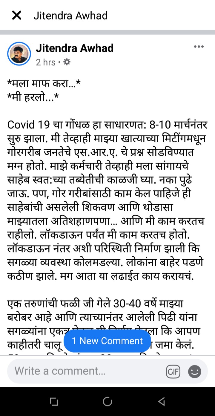 जितेंद्र आव्हाड यांची संपूर्ण फेसबुक पोस्ट