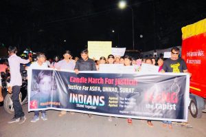 कठुआ, उन्नाव व सुरत येथे झालेल्या महिलांवर अत्याचारा विरोधात शिंदे हायस्कुल चौक ते गजानन महाराज चौक या दरम्यान आक्रोश यात्रा व कॅण्डल मोर्चा काढण्यात आला. या मोर्च्यामध्ये सहकारनगर, पद्मावती व लक्ष्मीनगर परिसरातील अनेक संस्था आणि संघटना सहभागी झाल्या होत्या.