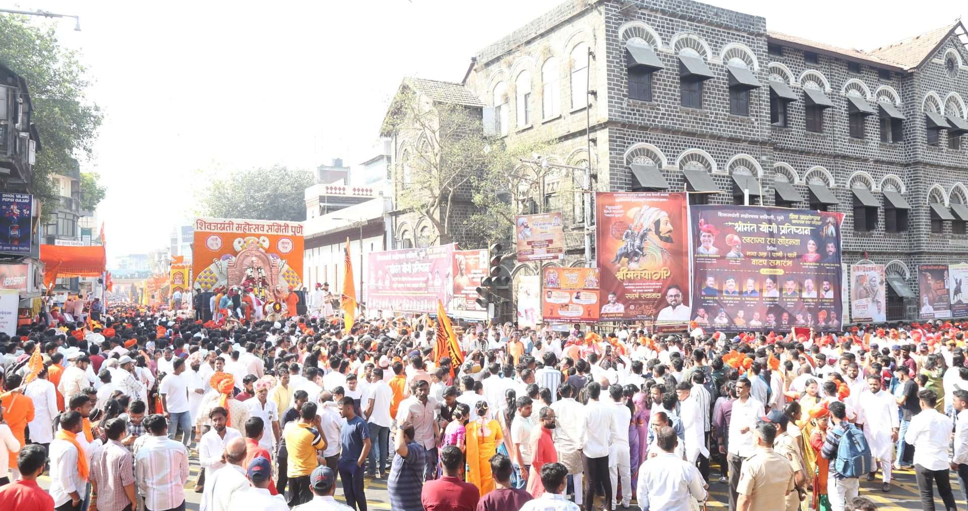 पुणे : फुलांची आकर्षक सजावट असलेला जिजाऊ मॅांसाहेब शहाजी महाराज शिवज्योत मुख्य स्वराज्यरथ… एकापाठोपाठ येणारे सरदारांचे, मावळ्यांचे, वीर मातांचे स्फुर्ती देणारे ९६ स्वराज्यरथ… महाराणी ताराराणी शौर्य पथकातील ५१ रणरागिणींच्या मर्दानी खेळांची चित्तथरारक मानवंदना… ५१ रणशिगांची ललकारी… नादब्रह्म ट्रस्ट ढोलताशा पथकाचा रणगजर… सनई-चौघडयांचे मंगलमय सूर… हजारोंच्या संख्येने पारंपरिक पोशाखात उपस्थित महिला आणि शिवभक्तांनी केलेला जय शिवाजी जय भवानीचा जयघोष अशा पवित्र वातावरणात शिवकाल पुन:श्च एकदा पुण्यामध्ये अवतरला.