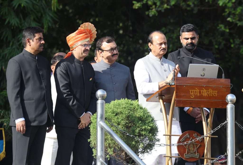 महाराष्ट्र राज्य स्थापनेच्या 65 व्या वर्धापन दिनानिमित्त पोलीस कवायत मैदान येथे झालेल्या मुख्य शासकीय ध्वजारोहण कार्यक्रमात राष्ट्रध्वज फडकावून राष्ट्रध्वजाला मानवंदना दिल्यानंतर ते बोलत होते. यावेळी आमदार बापुसाहेब पठारे, विभागीय आयुक्त डॉ. चंद्रकांत पुलकुंडवार, पुणे महानगरपालिका आयुक्त डॉ. राजेंद्र भोसले, जमाबंदी आयुक्त व भूमी अभिलेख संचालक डॉ. सुहास दिवसे, पुणे पोलीस आयुक्त अमितेश कुमार, पिंपरी चिंचवड पोलीस आयुक्त विनय कुमार चौबे, शिक्षण आयुक्त सचिंद्र प्रताप सिंह, क्रीडा व युवक सेवा आयुक्त सुरज मांढरे, साखर आयुक्त सिद्धाराम सालीमठ, महामेट्रोचे व्यवस्थापकीय संचालक श्रावण हर्डीकर, ‘पीएआरडीए’चे मुख्य कार्यकारी अधिकारी योगेश म्हसे, जिल्हाधिकारी जितेंद्र डुडी, पोलीस अधीक्षक पंकज देशमुख, जिल्हा परिषदेचे मुख्य कार्यकारी अधिकारी गजानन पाटील, स्वातंत्र्यसैनिक यांच्यासह वरिष्ठ प्रशासकीय अधिकारी, विविध विभागांचे वरिष्ठ अधिकारी-कर्मचारी, ज्येष्ठ नागरिक, विद्यार्थी आणि नागरिक उपस्थित होते.
