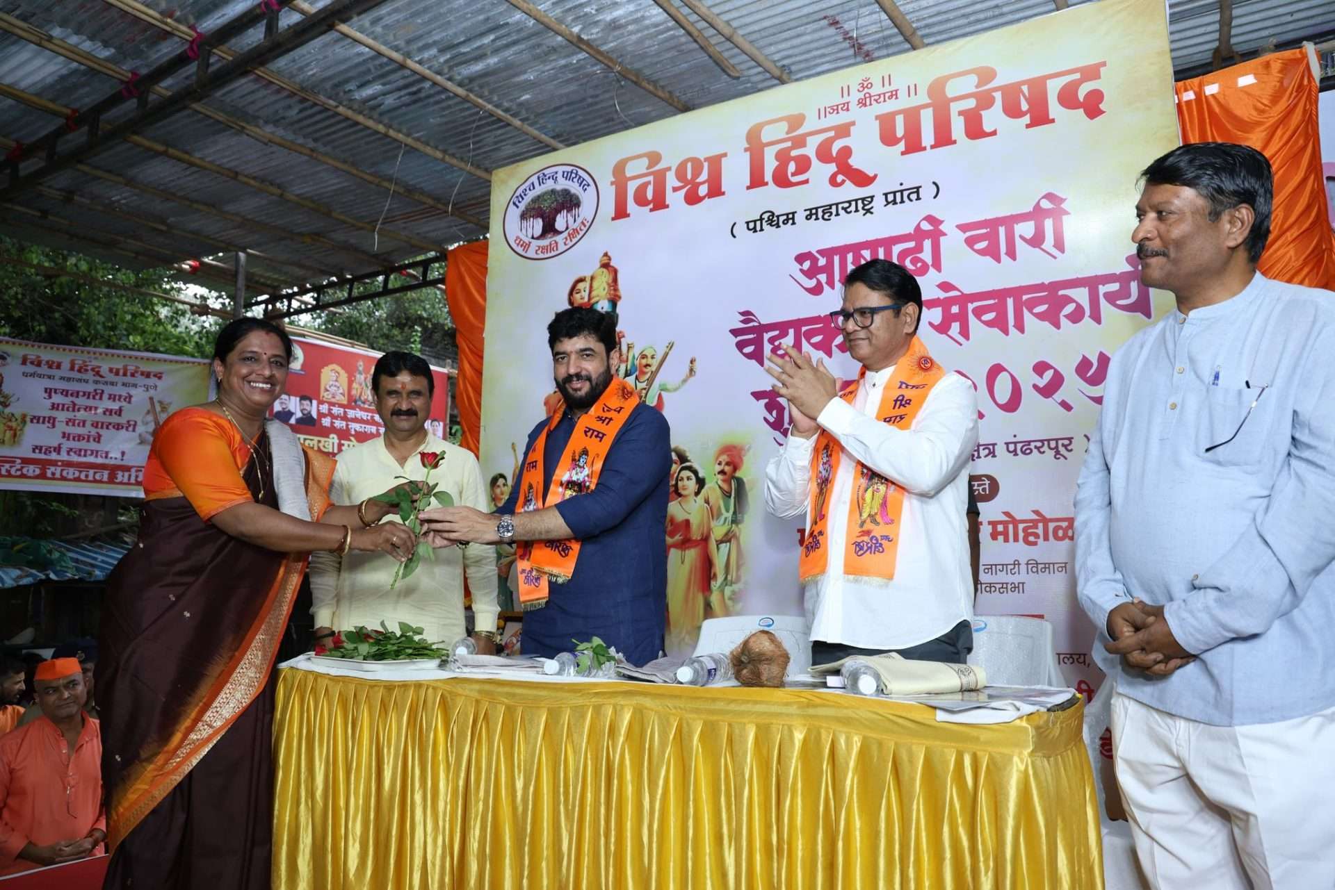 विश्व हिंदू परिषदेच्या वतीनं गेली ३८ वर्षे पुणे ते पंढरपूर संतश्रेष्ठ श्री ज्ञानेश्वर महाराज आणि जगद्गुरु संत श्री तुकाराम महाराज पालखी सोहळ्यात वारकरी बंधू-भगिनींसाठी अखंड वैद्यकीय तथा आरोग्य सेवा देण्यात येत असून या यंदाच्या सेवेकार्याचा शुभारंभ करण्यात आला. विश्व हिंदू परिषद पश्चिम महाराष्ट्र प्रांतच्या माध्यमातून हे पुणे ते श्री क्षेत्र पंढरपूरदरम्यान दोन्ही पालखी सोहळ्यांमध्ये या उपक्रमाचे आयोजन करण्यात येते.