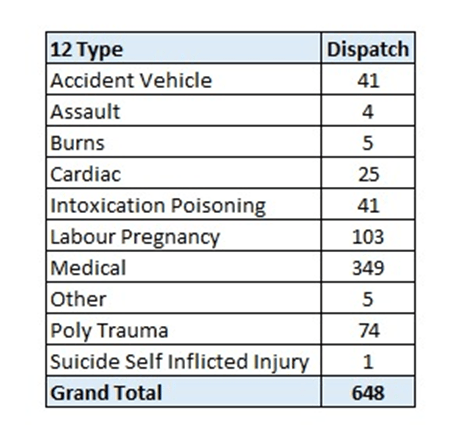 दिनांक १ जुलै रोजीचा आपत्कालीन वैद्यकीय सेवेचा अहवाल खालिल प्रमाणे,