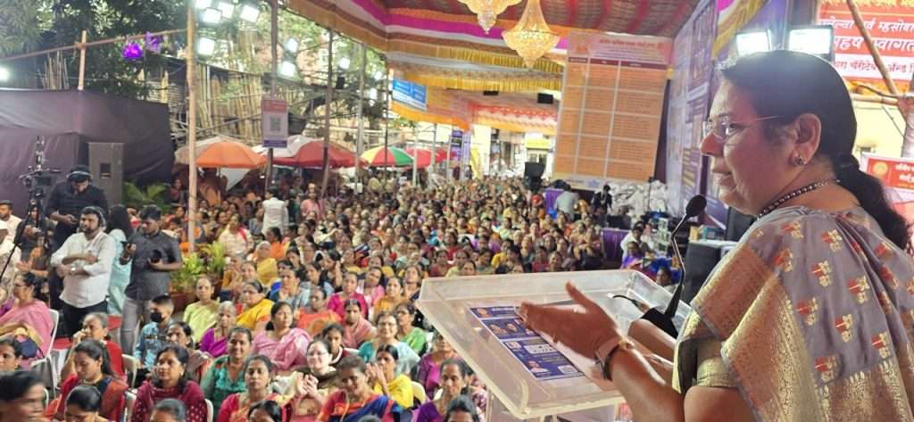महिला सबलीकरणावर बोलताना डॉ. गोऱ्हे यांनी स्त्रियांनी समाजकारण आणि राजकारणात सक्रिय होण्याची आवश्यकता अधोरेखित केली. “मा.ना. नरेंद्र मोदी यांनी महिलांसाठी लोकसभा आणि विधानसभांमध्ये एक तृतीयांश आरक्षण दिले आहे. आता महिलांनी नेतृत्वात पुढाकार घ्यावा,” असे आवाहन त्यांनी केले. महिलांना स्वावलंबी बनवण्यासाठी बँका आणि शासनाच्या विविध योजना अधिक प्रभावी करण्याचे आश्वासनही त्यांनी दिले. “मा.ना. देवेंद्र फडणवीस, मा.ना. एकनाथ शिंदे व मा.ना. अजित पवार यांचे महायुतीचे सरकार ‘लाडकी बहीण योजना’ कधीही बंद करणार नाही, याची ग्वाही देऊन ‘लाडक्या बहिणींना’ बँकांना जोडून घेण्याच्या कार्यक्रमाची गरज डॉ. नीलम गोऱ्हे यांनी व्यक्त केली. ‘लाडकी बहीण योजना’, ‘वयोश्री योजना’ यांसारख्या योजनांचा अधिकाधिक महिलांनी लाभ घ्यावा आणि उद्योजकतेसाठी पुढे यावे,” असे आवाहनही त्यांनी केले.