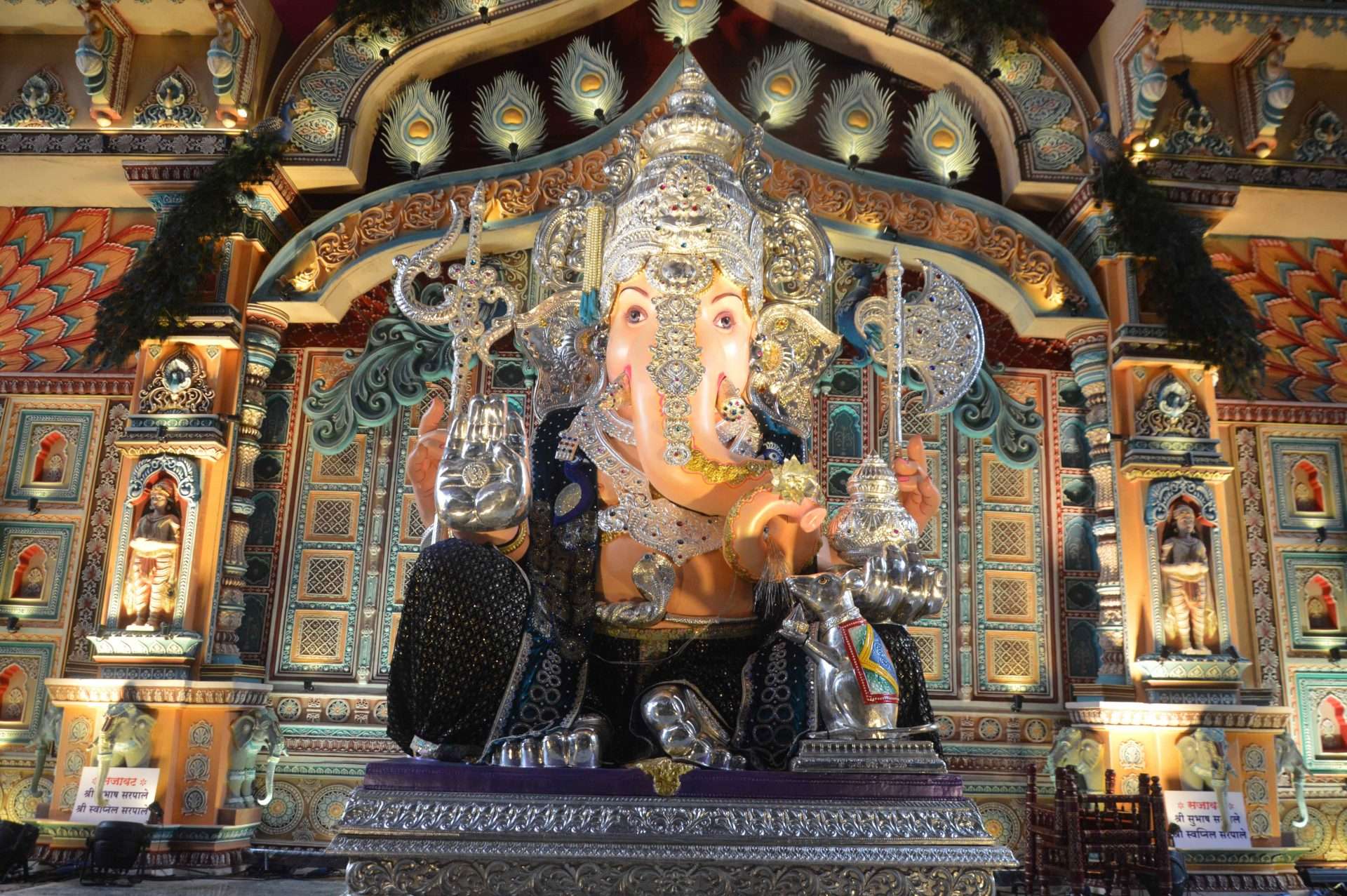 नितीन पंडित म्हणाले, तुळशीबाग सार्वजनिक गणेशोत्सव मंडळाने मथुरेतील ‘वृंदावन’ या संकल्पनेवर आधारित देखावा सादर केला आहे. तब्बल ८० फूट रुंद, १२० फूट लांब आणि ३५ फूट उंच असा भव्य देखावा असून देखाव्यात १४ फूट उंचीचे ४० खांब, दहा बाय दहा आकाराचे १४ पॅनल आणि सुमारे ३० मोर वृंदावनात विहार करताना साकारले आहेत. राधाकृष्णांचे मंदिर आणि २० फूट लांब, ४० फूट उंच भव्य प्रवेशद्वार या देखाव्याचे प्रमुख आकर्षण आहे. उत्सव काळात अभिषेक, गणेश याग, बृहस्पती याग, सत्यविनायक पूजा आदी विविध धार्मिक कार्यक्रमांचे आयोजन करण्यात आले आहे.
