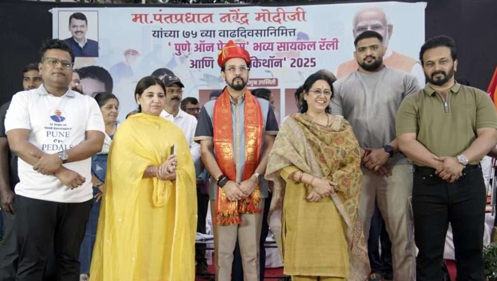 पुणे: “शारीरिक स्वास्थ्य, पर्यावरण सरंक्षणासाठी सायकल चालवणे अतिशय उपयुक्त आहे. पंतप्रधान नरेंद्र मोदी यांनी फिट इंडियाचा नारा दिला असून, त्यांनी दिलेल्या पंचसुत्रीवर पुणेकरांनी आपले आरोग्य चांगले राखावे,” असे प्रतिपादन माजी केंद्रीय मंत्री अनुराग ठाकूर यांनी केले. मेधाताईंच्या पुढाकारातून मोदींच्या वाढदिवसानिमित्त पुणेकरांनी दिलेली ही अनोखी भेट असल्याचेही ठाकूर म्हणाले.