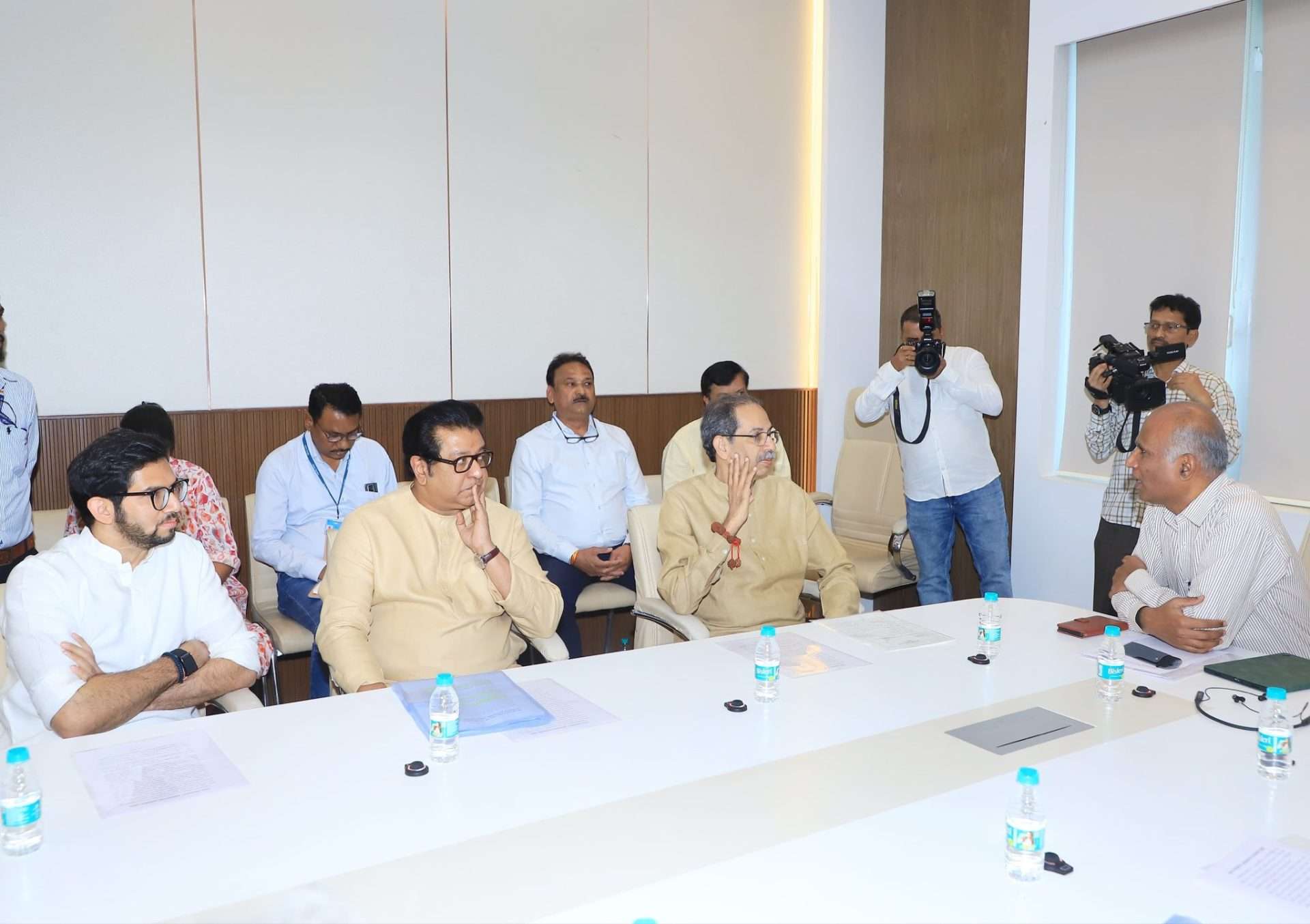 ठाकरे बंधू, शरद पवार आणि बाळासाहेब थोरात हे निवडणूक अधिकऱ्यांची भेट घेण्यासाठी पोहोचले . शिवालयातून निघाल्यानंतर राज ठाकरे आणि उद्धव ठाकरे यांनी एकाच गाडीतून प्रवास केला.मुख्य निवडणूक अधिकाऱ्यांची भेट घेण्यासाठी सर्वपक्षीय शिष्टमंडळ मंत्रालयातील सातव्या मजल्यावर दाखल झाले होते . राज ठाकरे आणि उद्धव ठाकरे यावेळी सोबत दिसून आले. शरद पवार देखील अनेक वर्षांनी मंत्रालयात पोहोचलेले पाहायला मिळाले.
