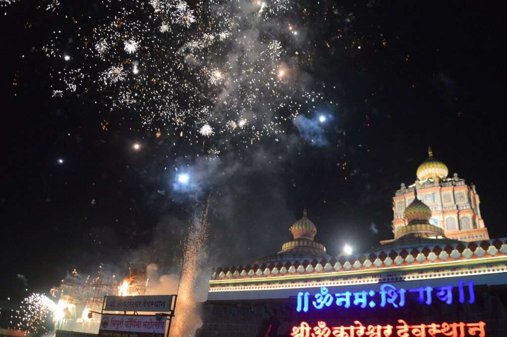 पुणे: त्रिपुरासुराच्या तीन पुत्रांच्या पुतळ्याचा शंकराने एकाच बाणाने केलेला संहार… त्यानंतर झालेली आकर्षक आतषबाजी त्यासोबत सुंदर शिव तांडव नृत्य यांच्या एकत्रित सादरीकरणातून पेशवेकालीन ओंकारेश्वर मंदिरात त्रिपुरारी पौर्णिमा उत्साहात साजरी करण्यात आली.