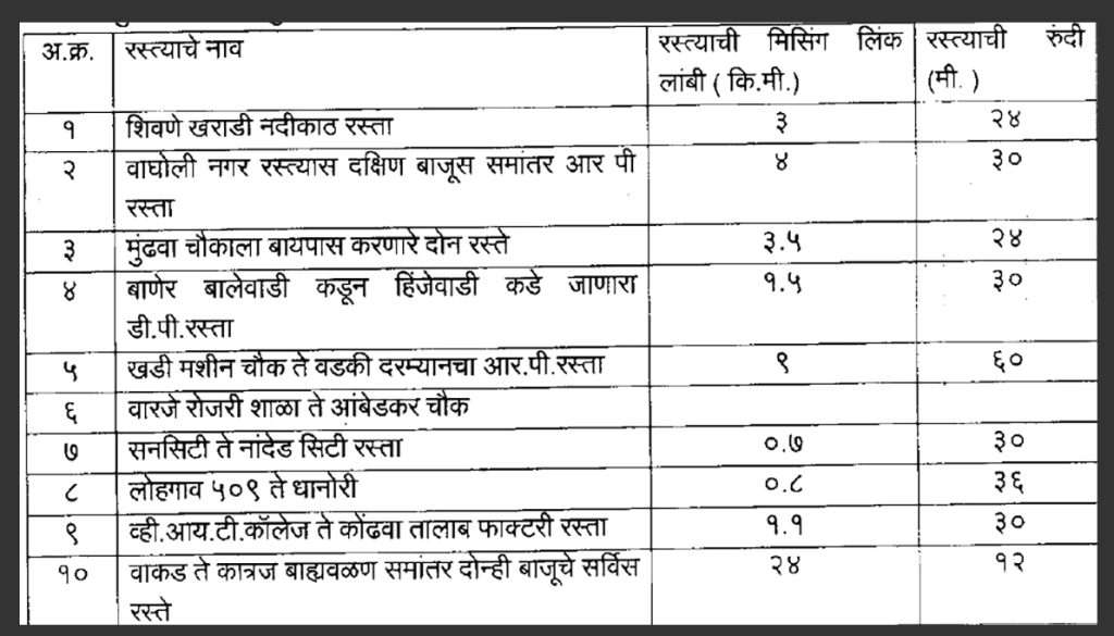 या रस्त्यांचा डी.पी.आर. तयार करण्याबाबत तातडीने कार्यवाही करणेस सूचनाअतिरिक्त आयुक्तांनी दिल्या आहेत . संबधित कामांचा डी. पी. आर. प्राप्त झाल्यांनतर सदरचे कामे पीपीपी अथवा अन्य मार्गाने तरतूद उपलब्ध करून करण्या बाबतचे धोरणात्मक निर्णय घेण्यात येईल असेही महापालिकेने म्हटले आहे.
