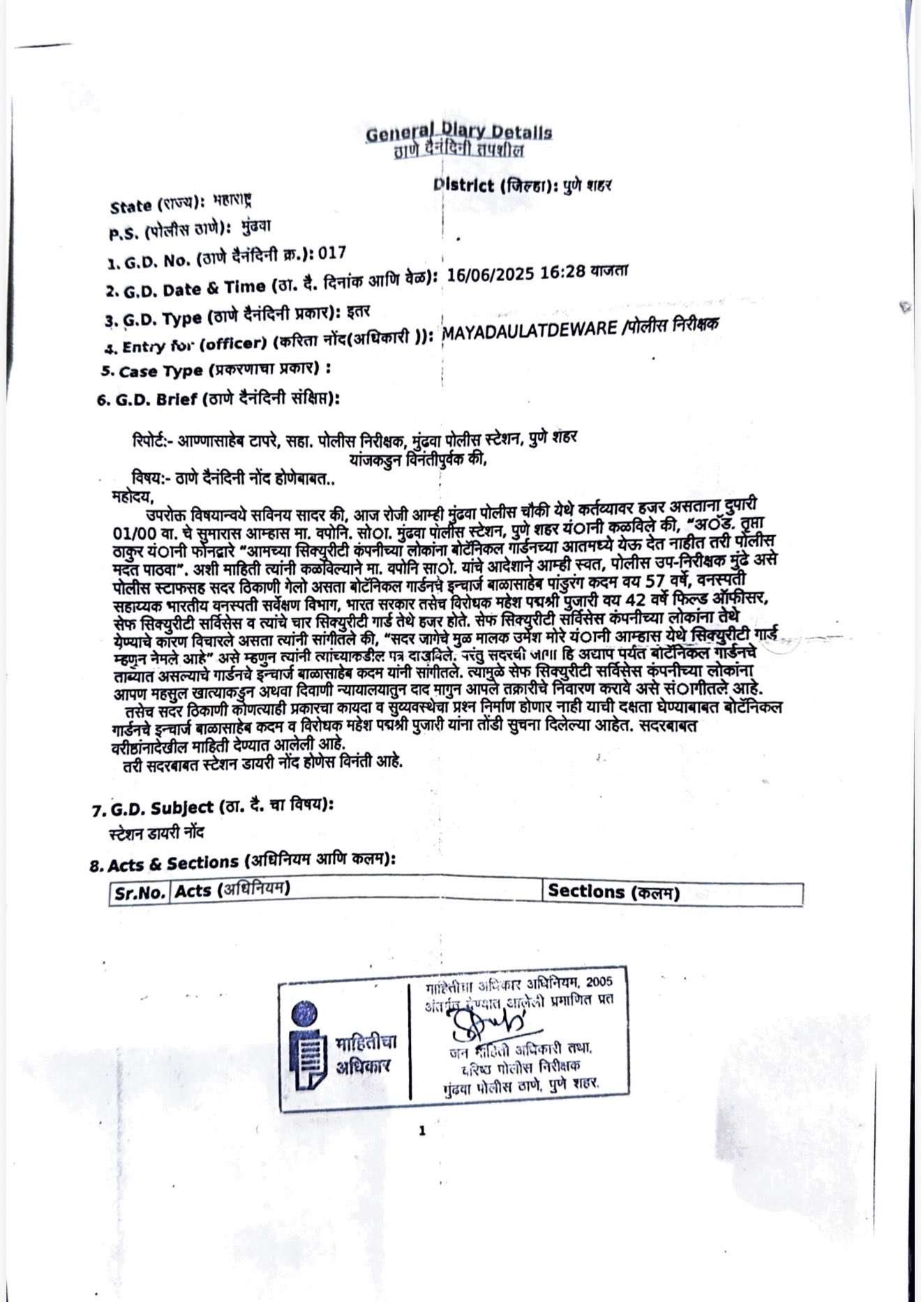 यावेळी दमानिया यांनी पोलिस डायरीतील नोंदींचे वाचन करून गंभीर बाबी समोर आणल्या. त्या म्हणाल्या, आता अजित पवारांना राजीनामा द्यावाच लागेल. कारण पोलिस स्टेशन डायरीतले उल्लेख मी तुम्हाला वाचून दाखवते आहे. १६ जून २०२५ दुपारी ४ वाजून २८ मिनिटांनी उपरोक्त विषयान्वये आम्ही मुंढवा पोलिस ठाण्यात कर्तव्यावर हजर असताना मुंढवा पोलिस ठाण्यात हे कळवण्यात आलं की अॅड. तृप्ती ठाकूर यांनी फोन करुन आमच्या सिक्युरीटी लोकांना बॉटेनिकल गार्डनमध्ये येऊ देत नाहीत त्यामुळे पोलिसांची कुमक पाठवा. अधिकाऱ्यांच्या आदेशाने आम्ही उपनिरीक्षक मुंडे यांच्यासह सदर ठिकाणी गेलो. त्यावेळी बॉटेनिकल गार्डनचे प्रमुख बाळासाहेब कदम (वय-५७), महेश पुजारी आणि फिल्ड ऑफिसर सेफ सिक्युरिटी सर्व्हिसेस यांचे चार गार्ड हजर होते. त्यांनी आम्हाला सांगितलं की उमेश मोरे यांनी नियुक्ती केली आहे. पण ती जागा बोटॅनिकल गार्डनच्या ताब्यात असल्याने बाळासाहेब कदम यांनी सांगितलं. अमेडियाच्या लोकांनी जो व्यवहार केला त्यांनी पोलिसांना फोन केला. जागा रिकामी करुन घ्या अशी मागणी करतात.