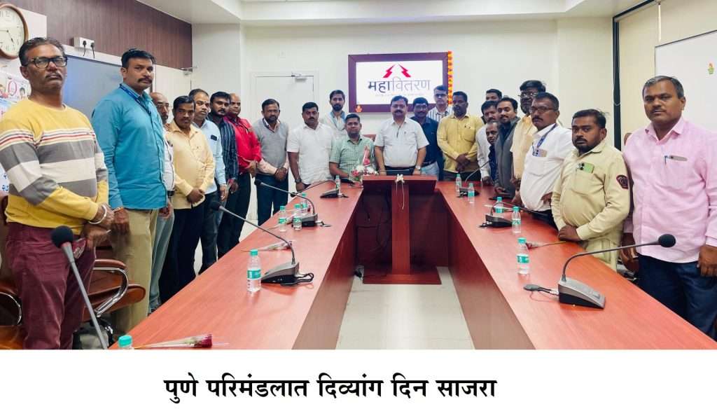 पुणे महावितरणच्या रास्तापेठ येथील परिमंडल कार्यालयात जागतिक दिव्यांग दिन उत्साहात साजरा करण्यात आला. प्रभारी मुख्य अभियंता श्री. सिंहाजीराव गायकवाड यांच्या हस्ते परिमंडलातील दिव्यांग कर्मचाऱ्यांना सन्मानित करण्यात आले. यावेळी बोलताना श्री. गायकवाड म्हणाले, दिव्यांग कर्मचारी आपल्या व्यंगांवर मात करुन कामात कायम अग्रेसर असतात. त्यांच्या संघर्षातून इतरांनाही प्रेरणा मिळते.महावितरणमध्ये दिव्यांगांसाठी असलेल्या सुविधा व सवलती याविषयी सविस्तर माहिती देण्यात आली. तर दिव्यांगांना येणाऱ्या अडचणी सोडविण्याची ग्वाहीही मुख्य अभियंता यांनी उपस्थितांना दिली. कार्यक्रमास उपमुख्य औद्योगिक संबंध अधिकारी भुपेंद्र वाघमारे यांच्यासह दिव्यांग कर्मचाऱ्यांची मोठ्या प्रमाणात उपस्थिती होती. सूत्रसंचालन महेश कारंडे यांनी केले.