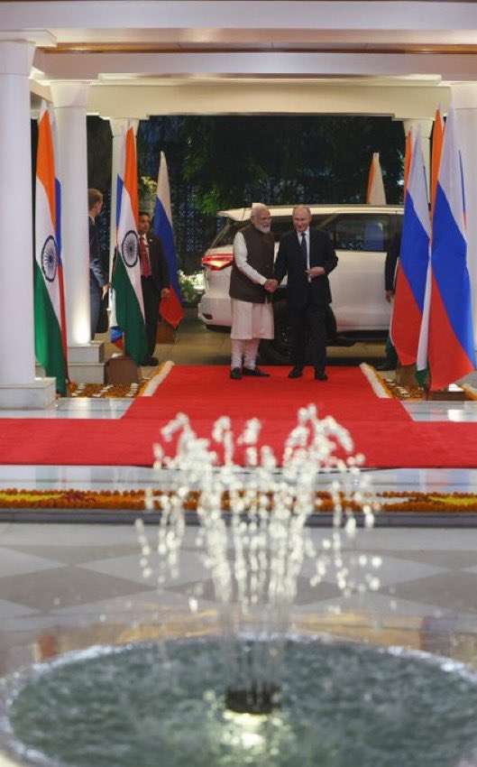 रशियन राष्ट्राध्यक्ष व्लादिमीर पुतिन यांनी भारतात पोहोचताच सुरक्षा प्रोटोकॉल मोडला. त्यांनी रशियातून एअरलिफ्ट करून आणलेली आपली ऑरस सीनेट कार सोडली आणि पंतप्रधान मोदींसोबत एका गाडीत बसून विमानतळावरून निघाले.