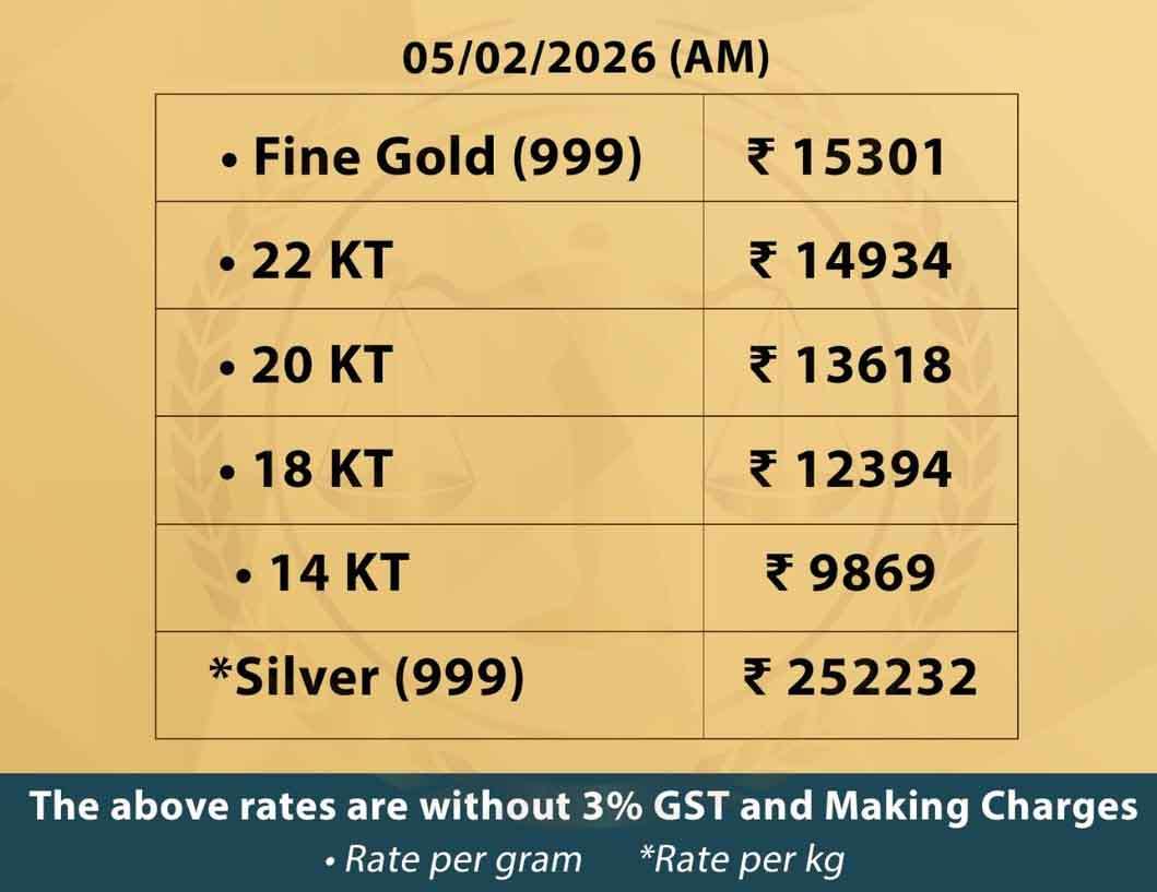 सोन्या-चांदीच्या बाजारात सलग दोन दिवसांच्या तेजीनंतर आज 5 फेब्रुवारी रोजी घसरण झाली आहे. वायदा बाजारात (MCX) चांदीच्या दरात सुमारे 28 हजार रुपये (11%) घट झाली आहे. 1 किलो चांदीचा भाव 2.52 लाख रुपयांवर पोहोचला आहे.सोन्याचे दरही सुमारे 3 हजार रुपये (2%) कमी झाले आहेत. 10 ग्रॅम सोने 1.53 लाख रुपयांवर आहे. यापूर्वी 29 जानेवारी ते 2 फेब्रुवारी दरम्यान चांदीची किंमत 1.60 लाख रुपयांनी कमी झाली होती. तर सोन्याच्या किमतीत 26 हजार रुपयांची घट झाली होती. सराफा बाजाराचे दर दुपारी 12 वाजता जाहीर केले जातील.