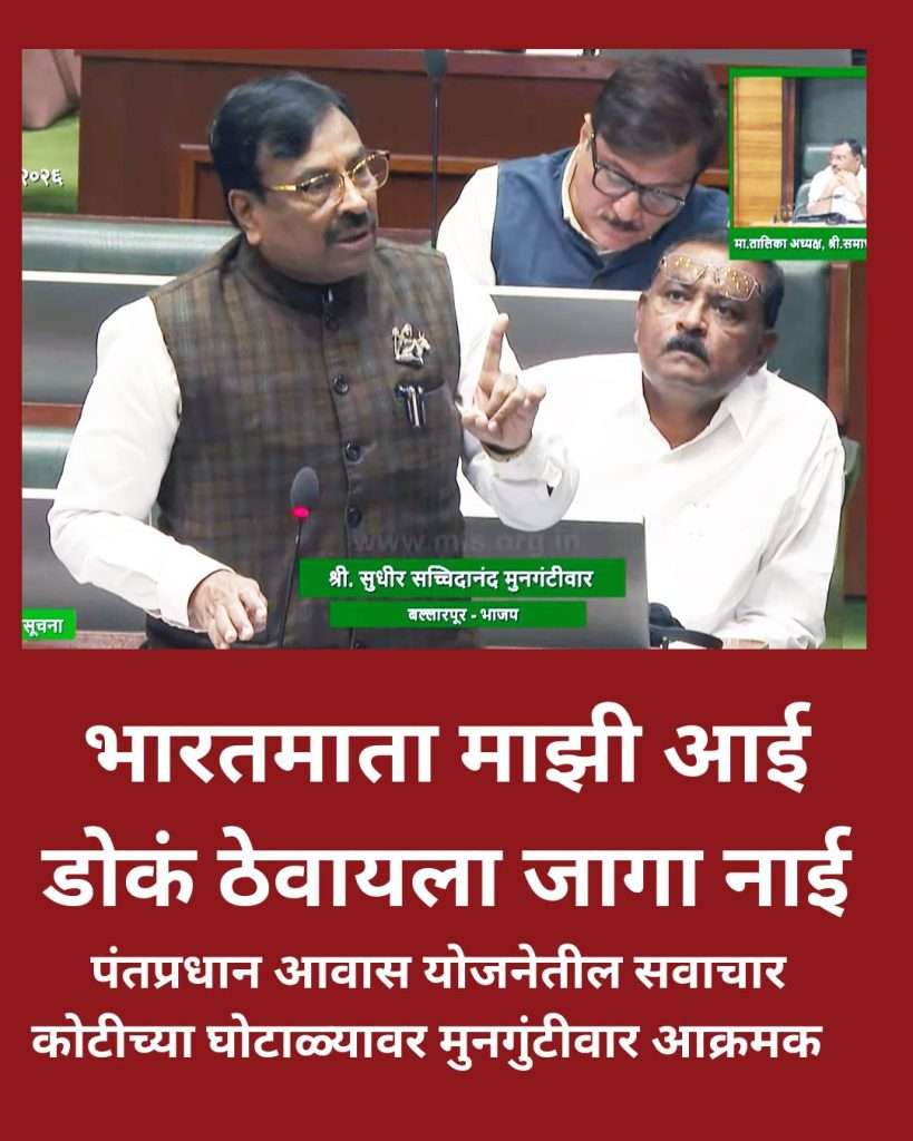 भारत माता माझी आई, पण इथे डोके ठेवायला जागा नाही, अशा शब्दांत आपल्या भावना व्यक्त करत भाजप नेते सुधीर मुनगंटीवार यांनी विधिमंडळात भ्रष्ट अधिकारी आणि संथ न्यायप्रक्रियेवर जोरदार प्रहार केला. केवळ चौकशीच्या नावाखाली भ्रष्टाचाराला पाठीशी घालणाऱ्या यंत्रणेवर त्यांनी तीव्र नाराजी व्यक्त केली. पंतप्रधान मोदी म्हणतात, ‘गरीबों के सम्मान में, मोदीजी मैदान में’. मात्र, जर सरकारी अधिकारी जनतेच्या पैशांची लूट करत असतील, तर त्यांच्यावर तात्काळ आणि कठोर कारवाई व्हायलाच हवी. चौकशी पूर्ण होईपर्यंत किंवा न्यायालयाचा निकाल येईपर्यंत संबंधित दोषी अधिकाऱ्याला पदावरून निलंबित का केले जात नाही? असा रोकडा सवाल त्यांनी विचारला. जोपर्यंत अशी कडक पावले उचलली जात नाहीत, तोपर्यंत भ्रष्ट अधिकाऱ्यांमध्ये धाक निर्माण होणार नाही. हायकोर्टात 56 लाखांहून अधिक केसेस प्रलंबित आहेत. न्यायालयाच्या माध्यमातून निकाल लागायला 50 वर्षे लागतील, अशी जनभावना झाली आहे. त्यामुळे ‘कोर्टाचा निकाल लागेल तेव्हा लागेल, पण तोपर्यंत संबंधित व्यक्तीला घरी बसवा’, अशी आक्रमक भूमिका त्यांनी घेतली.