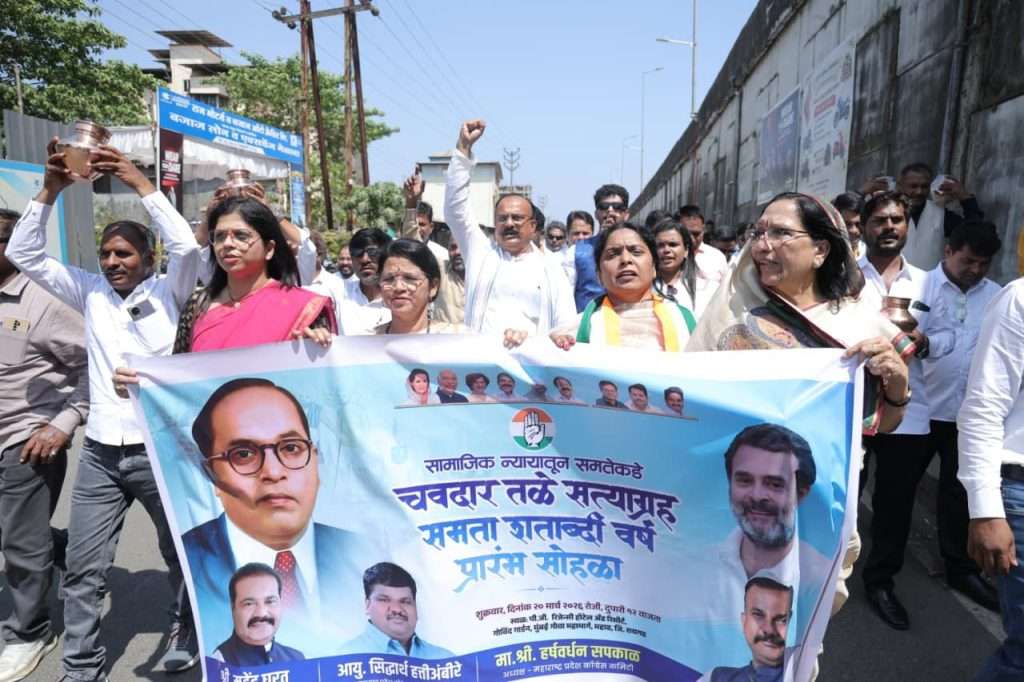 महाडमध्ये ‘चवदार तळे सत्याग्रह समता शताब्दी वर्ष’ सोहळ्याचा शुभारंभ काँग्रेस प्रदेशाध्यक्ष हर्षवर्धन सपकाळ, महात्मा गांधी यांचे पणतु, ज्येष्ठ सामाजिक कार्यकर्ते तुषार गांधी, उल्का महाजन, गांधीवादी नेते जयंत दिवाण, काँग्रेसच्या एस. सी. विभागाचे प्रदेशाध्यक्ष सिद्धार्थ हत्तीअंबिरे, रायगड जिल्हा काँग्रेस अध्यक्ष महेंद्र घरत, प्रदेश काँग्रेसचे सरचिटणीस शाह आलम शेख, ॲड. श्रद्धा ठाकूर, अमर खानापुरे, फिशरमन काँग्रेसचे मार्तंड नाखवा, प्रवक्ते हनुमंत पवार, प्रदेश सचिव श्रुती म्हात्रे, पनवेल युवक काँग्रेसचे अध्यक्ष हेमराज म्हात्रे यांच्यासह काँग्रेस पदाधिकारी मोठ्या संख्येना उपस्थित होते. या कार्यक्रमानंतर काँग्रेस प्रदेशाध्यक्ष हर्षवर्धन सपकाळ यांच्यासह काँग्रेस पदाधिकारी कार्यकर्त्यांनी सभागृहापासून चवदार तळ्यापर्यंत पदयात्रा करून महामानव डॉ. बाबासाहेब आंबेडकर यांना अभिवादन केले व चवदार तळ्यातील पाणी कलशात भरून काँग्रेस पदाधिका-यांना दिले. हे पाणी सर्व जिल्ह्यांमध्ये गावागावात जाऊन नदी, तलाव व धरणातही सोडले जाणार आहे.