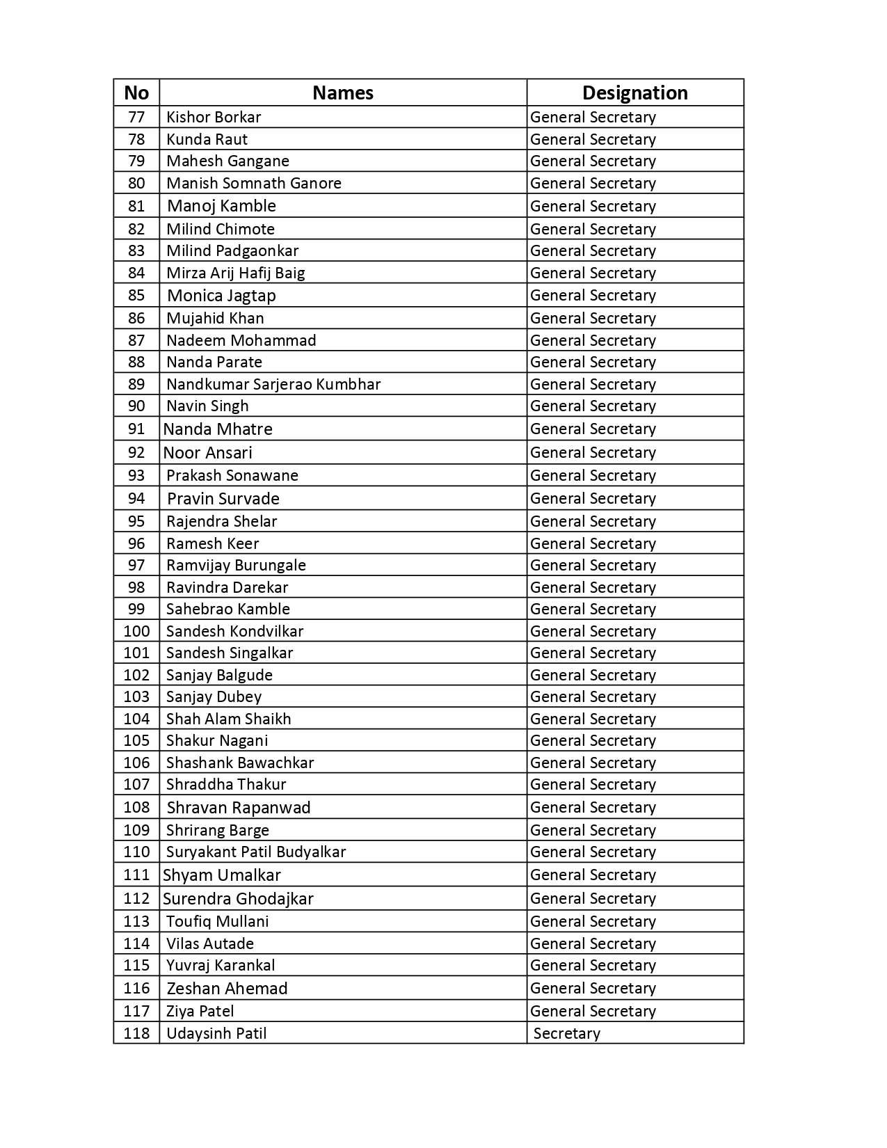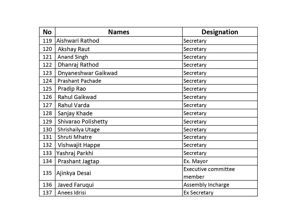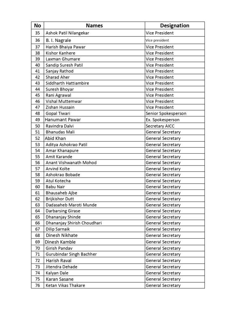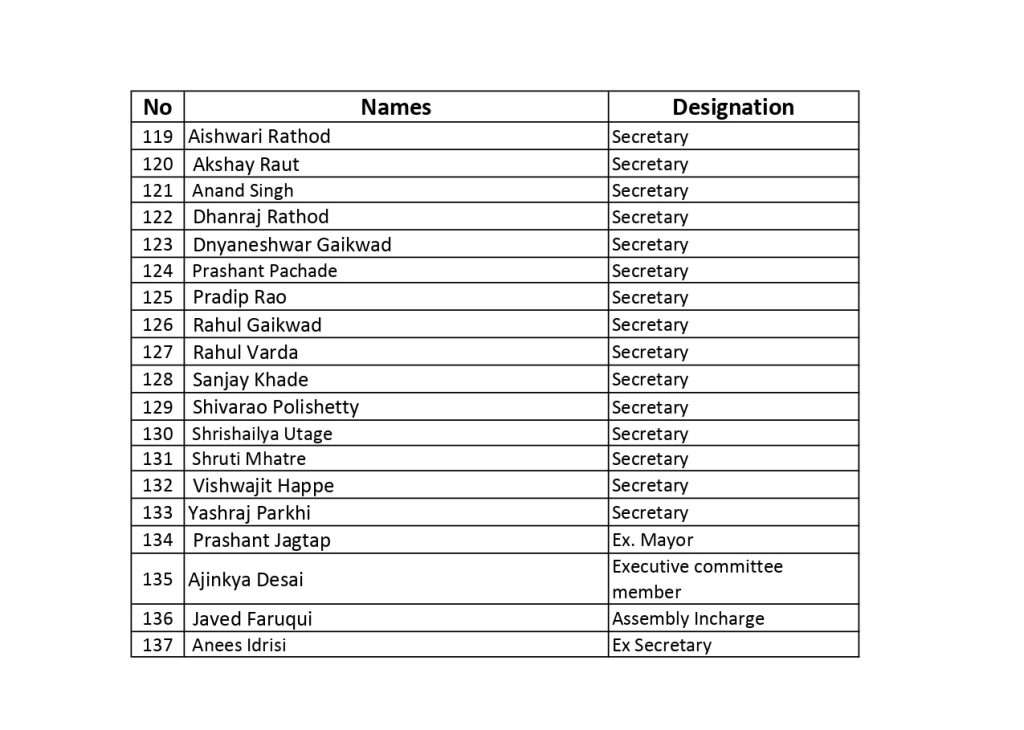 ज्येष्ठ नेते बाळासाहेब थोरात, माजी प्रदेशाध्यक्ष नाना पटोले, विधान परिषदेतील गटनेते सतेज पाटील, गोव्याचे प्रभारी माणिकराव ठाकरे, माजी मंत्री नसीम खान, अमित देशमुख, यशोमती ठाकूर, आ. डॉ. नितीन राऊत यांच्यासह माजी मंत्री, खासदार, आमदार व वरिष्ठ पदाधिकाऱ्यांसह १८३ सदस्यांचा या यादीत समावेश आहे.पुण्यातील रमेश बागवे,मोहन जोशी,अभय छाजेड, यांचा समावेश आहे तर अनंत गाडगीळ, दीप्ती चौधरी,गोपाळ तिवारी, प्रशांत जगताप यांचा समन्वयक म्हणून समावेश आहे.