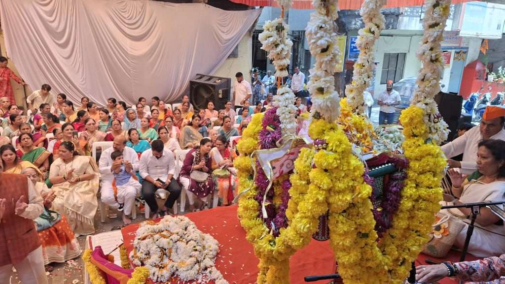 पुणे : कसबा पेठेतील श्रीराम मंदिरात (चव्हाण) आज पारंपरिक पद्धतीने आणि मोठ्या भक्तीभावाने श्रीराम जन्मोत्सव सोहळा साजरा करण्यात आला. महोत्सवाचे यंदाचे ३२वे वर्ष आहे. उपक्रमाविषयी गणेश चव्हाण यांनी प्रास्ताविकात माहिती दिली. जन्मोत्सवानिमित्त मंदिरात फुलांची आकर्षक सजावट करण्यात आली होती. श्रीराम जन्मोत्सवानिमित्त श्रीराम जन्म कीर्तन व सुरेल श्रीराम भक्तीगीतांच्या कार्यक्रमाचे आयोजन करण्यात आले होते. ह. भ. प. अंजली कऱ्हाडकर यांनी कीर्तन सेवा सादर केली तर डॉ. अनघा धायगुडे, प्रणव तडवळकर, विद्या यंदे, तनुजा चव्हाण यांनी भक्तीगीते सादर केली. अशोक मोरे, प्रणव तडवळकर, धनंजय साळुंखे यांनी साथसंगत केली. परिसरातील भाविकांनी मोठ्या संख्येने हजेरी लावत श्रीरामाचा जयघोष केला. चव्हाण परिवार, श्रीराम अभिमन्यू मंडळ ट्रस्ट, चक्रवर्ती अशोक मंडळ ट्रस्ट यांच्या सहकार्याने श्रीराम जन्मोत्सवाचे आयोजन करण्यात आले होते. गणेश चव्हाण, भोला वांजळे यांनी संयोजन केले. श्रीराम जन्मोत्सवानिमित्त नागरिकांसाठी मोफत आरोग्य तपासणी शिबिर घेण्यात आले. या शिबिराचा नागरिकांनी मोठ्या संख्येने लाभ घेतला.