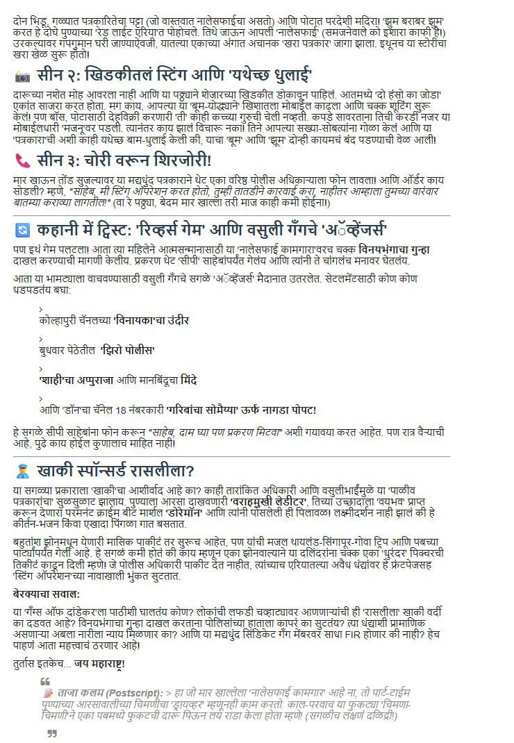 काल बेरक्या या पूर्वीच्या उस्मानाबाद आणि सध्याच्या धाराशिव मध्ये गाजलेल्या ब्लॉगवर पुण्यातील आलेल्या या वृत्ताने चांगलाच स्फोट केला.