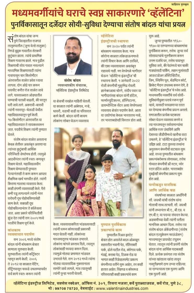 पुणे-गुंतवणूकदारांना १ ते ५ टक्के मासिक व्याजाचे आमिष दाखवून कोट्यवधी रुपयांची फसवणूक केल्याप्रकरणी वॅलेंटीना इंडस्ट्रीजच्या दोन संचालकांविरुद्ध अलंकार पोलिस ठाण्यात गुन्हा दाखल करण्यात आला आहे. या प्रकरणी आर्थिक गुन्हे शाखेने त्यांच्या कार्यालयावर आणि निवासस्थानी छापेमारी करत महत्त्वाची कागदपत्रे जप्त केली आहेत. प्राथमिक तपासात फसवणुकीचा आकडा ४३ कोटी रुपयांपेक्षा जास्त असल्याचे समोर आले आहे.संतोष नाथा बांदल Santosh Natha Bandal (रा. गिडणी पार्क, सॅलिसबरी पार्क)आणि ज्ञानेश्वर अनंत चोरगे Dnyaneshwar Anant Chorge (रा. लेकटाऊन सोसायटी, बिबवेवाडी) अशी गुन्हा दाखल झालेल्या संचालकांची नावे आहेत. आर्थिक गुन्हे शाखेने ९ महिने गोपनीय चौकशी करुन स्वत: पुढाकार घेऊन ही कारवाई केली आहे.याबाबत सहायक पोलीस निरीक्षक वैशाली तोटेवार यांनी अलंकार पोलीस ठाण्यात फिर्याद दिली आहे.बड्या राजकीय आणि प्रशासकीय हस्ती,बडी प्रसारमाध्यमे यांच्याशी कायम संबधित राहिल्याचे स्पष्ट झाले आहे. बड्या प्रसार माध्यमांच्या इव्हेंट ला स्पॉन्सर शिप देणे मुख्यमंत्र्यांपासून ते असंख्य सिलेब्रिटी समवेत कार्यक्रम करणे, यासह मोठी डामडौल या कंपनीची कायम दिसत आली आहे. त्यांचे कार्यालय Success Square, Office No 301, 3rd FloorKarve Statue Chowk, Karve Road Pune, Maharashtra, 411038 येथे आहे.
