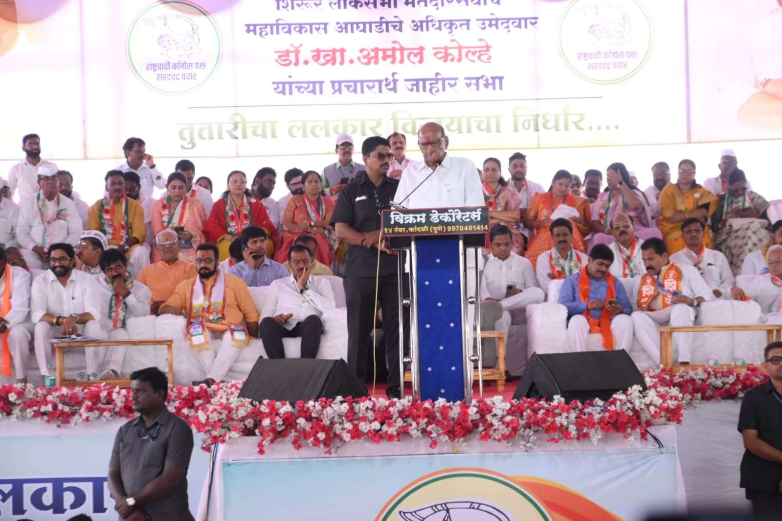 शिरुर मतदार संघातील महाविकास आघाडीतील राष्ट्रवादी काँग्रेस शरदचंद्र पवार पक्षाचे उमेदवार खासदार डॉ. अमोल कोल्हे यांच्या प्रचारार्थ ओतूर मध्ये जेष्ठ नेते पक्षाचे राष्ट्रीय अध्यक्ष शरद पवार यांच्या जाहीर सभेचे आयोजन करण्यात आले होते. यावेळी आमदार अशोक पवार, माजी आमदार ऍड. राम कांडगे, दिलीप ढमढेरे, शिवसेना उपनेते बबनराव थोरात माजी आमदार बाळासाहेब दांगट, शिवसेना जिल्हाप्रमुख सुरेश भोर उपजिल्हाप्रमुख संभाजी तांबे, बाबा परदेशी, अनंतराव चौगुले, सुनिल मेहेर, बाजीराव ढोले, शरद चोधरी, बाळासाहेब बाणखेले, अल्लूभाई ईनामदार,अनिल तांबे, दिपक औटी, बाबू पाटे, सुरेखा वेठेकर, राजश्री बोरकर, किशोर दांगट, शरद लेंढे, सुरज वाजगे आदी उपस्थित होते.