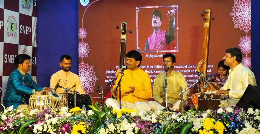 मैफलीच्या उत्तरार्धात किराणा घराण्याचे सुप्रसिद्ध गायक पंडित जयतीर्थ मेवुंडी यांचे दमदार गायन झाले. त्यांनी मैफलीची सुरुवात राग दुर्गाने केली. ‘तू रस कान्हा रे’, ‘चतर सुखदा बालमवा’ या बंदिशी सादर केल्या. दुर्गोत्सवाचे निमित्त साधून ‘दुर्गे भवानी चामुंडेश्वरी शक्तीदायिनी भक्तसहायिनी’ ही पूरिया धनाश्रीमधील स्वरचित दुर्गास्तुती पंडित मेवुंडी यांनी अतिशय प्रभावीपणे सादर केली. त्यानंतर आदीशक्तीचे रूप दर्शविणारी ‘जय दुर्गे दुर्गती परिहारिणी’ ही रचना ऐकविली. संत तुकाराम महाराज रचित ‘पोटा पुरते देई विठ्ठला लई नाही मागणे देवा’ हा अभंग रसिकांच्या मनाचा ठाव घेणारा ठरला. राघवेंद्रस्वामी रचित ‘संगीत प्रियमंगळ’, तसेच संत पुरंदरदास रचित सुप्रसिद्ध ‘लक्ष्मी बारम्मा’ या रचना उपस्थितांना विशेष भावल्या. पंडित मेवुंडी यांनी मैफलीची सांगता भैरवी रागातील ‘शारदा विद्यादायिनी दयानिधी’ या देवीस्तुतीपर रचनेने केली. त्यांना विनायक गुरव (तबला), शुभम शिंदे (पखवाज), तुषार केळकर, (संवादिनी), ललित मेवुंडी (सहगायन), योगिनी ढगे, अबोली सेवेकर (तानपुरा) तर माऊली टाकळकर (टाळ) यांनी सुरेल साथ केली.