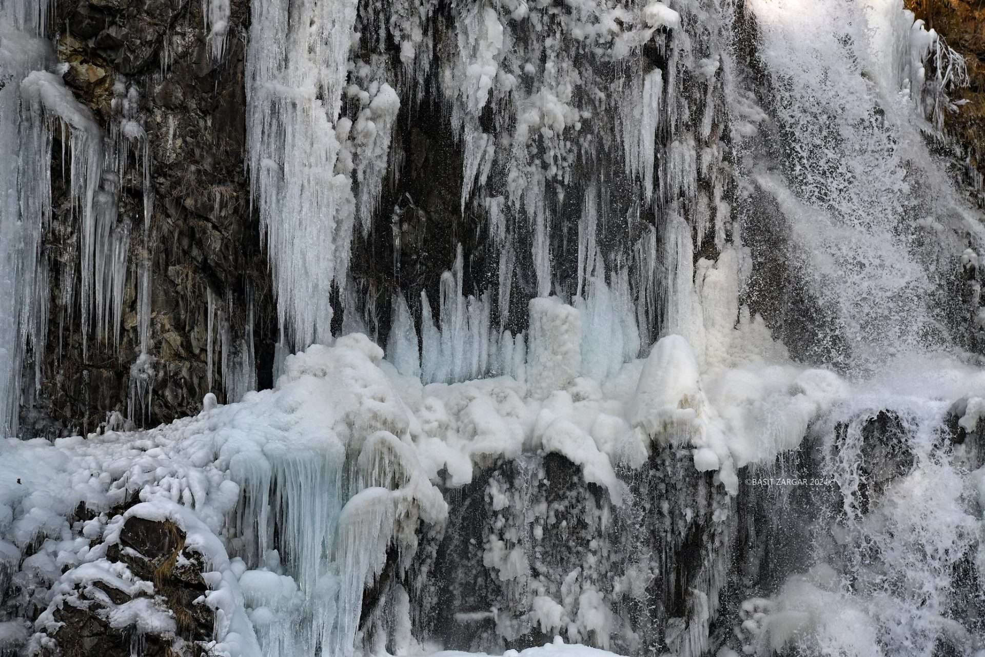 बद्रीनाथ धामाजवळील उर्वशी धाराचा धबधबा सततच्या बर्फवृष्टीमुळे वाहत असताना पूर्णपणे गोठला आहे.