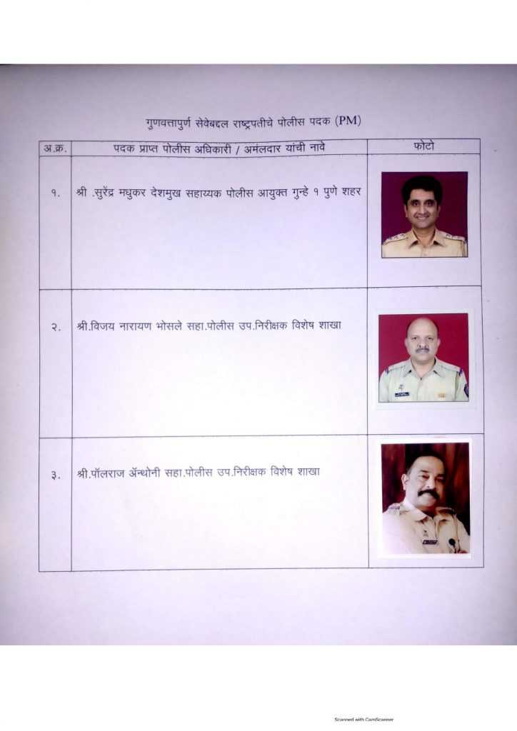 25.श्री पॉल राज अँथनी, सहाय्यक उप निरीक्षक, विशेष शाखा, पुणे शहर.