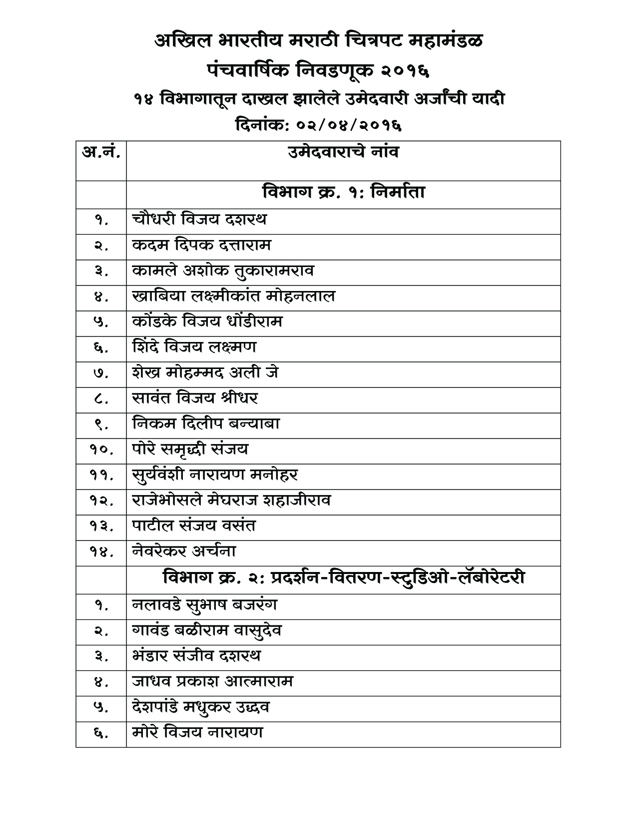 पुणे (अभिषेक लोणकर )-गर्भश्रीमंत विरुद्ध सामान्य व्यक्ती असा स्पष्ट सामना दर्शवित अखिल भारतीय मराठी चित्रपट महामंडळाची निवडणूक यंदा ऐतिहासिक निवडणूक ठरेल असे दिसते आहे . पूर्वी हि निवडणूक कधी केव्हा होत असत हेलोकांना समजत ही नसे पण आता जमाना बदलला आहे या जमान्यात प्रिंट आणि इलेक्ट्रॉनिक मिडिया मधून लोकांपर्यंत पोहोचणे तसे जिकीरीचे काम होवून बसले तरी फेसबुक व्हाटस अप च्या जमाण्याने या निवडणुकीचा ढोल एवढा वाजविला कि अभिनेत्री गटात १० अभिनेत्रींनी अर्ज भरीत निवडणूक रिंगणात उडी घेतली आहे . शिवाय कधी नव्हे तो आता या निवडणुकीत सर्वात प्रथमच महत्वाचे मुद्दे घेवून शरद लोणकर या उमेदवाराने आपला जाहीरनामा ही महिनाभर अगोदरच जाहीर केला आहे . ज्यास मुंबई पुणे नाशिक औरंगाबाद सह सातारा कोल्हापूर मधून ही उत्कृष्ट जाहीरनामा असे म्हटले गेले .विजयराव चौधरी आणि विजय सावंत आणि उदय मराठे यांच्यातील ‘ माय मराठी ‘ नावाच्या पॅनलने या जाहीरनाम्याचे स्वागत केले आहे . जाहीरनाम्यात सध्या तीनच मुद्दे दिले असून केवळ या तीन कामासाठी आपण हि निवडणूक लढवीत असल्याचे शरद लोणकर यांनी म्हटले आहे