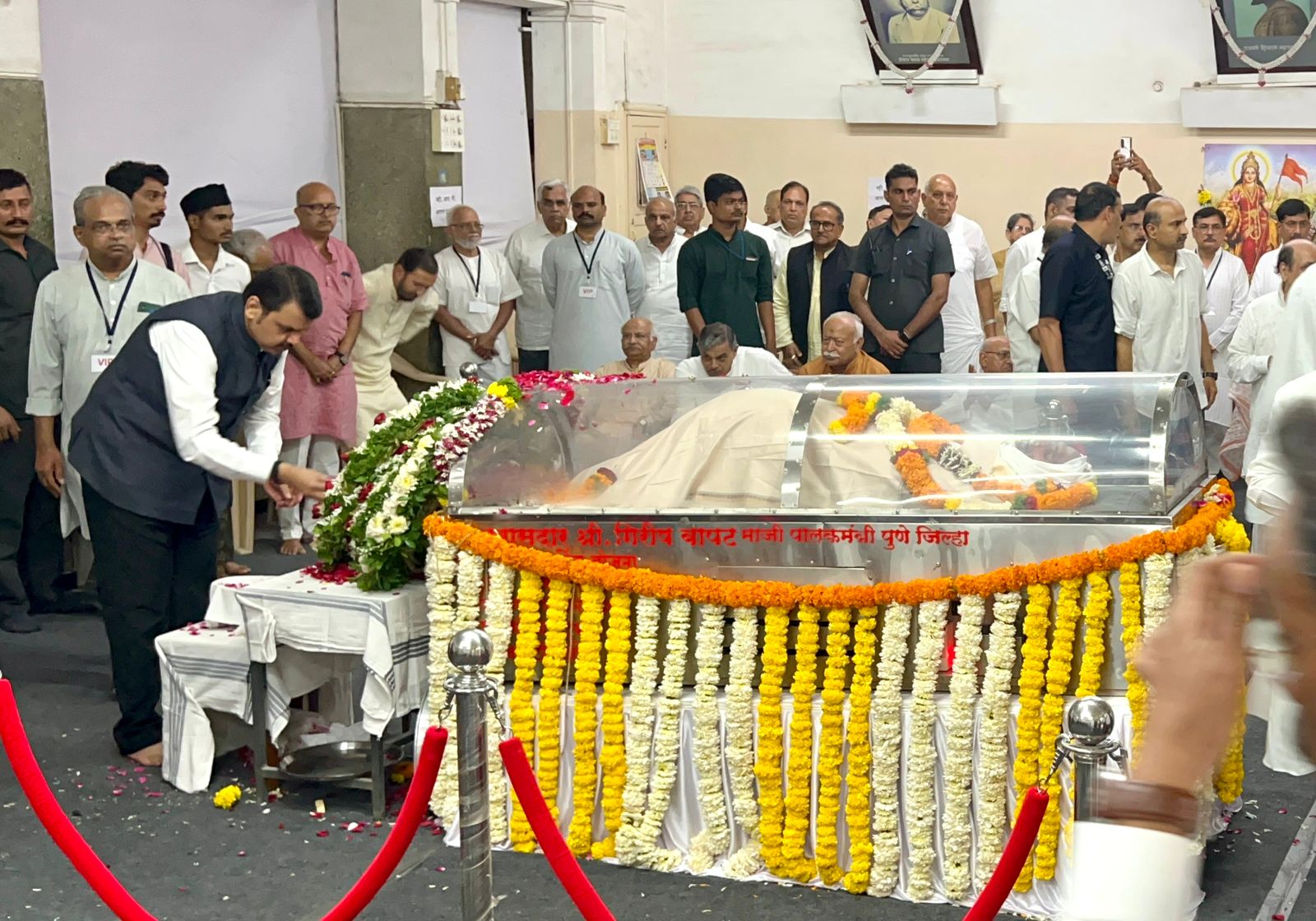 पुणे, दि.२५ : मुख्यमंत्री एकनाथ शिंदे यांनी राष्ट्रीय स्वयंसेवक संघाचे ज्येष्ठ प्रचारक व माजी सह सरकार्यवाह स्व. मदनदास देवी यांच्या पार्थिवाचे मोतीबाग येथील राष्ट्रीय स्वयंसेवक संघ कार्यालयात अंत्यदर्शन घेतले व पुष्पचक्र अर्पण करुन श्रद्धांजली वाहिली.