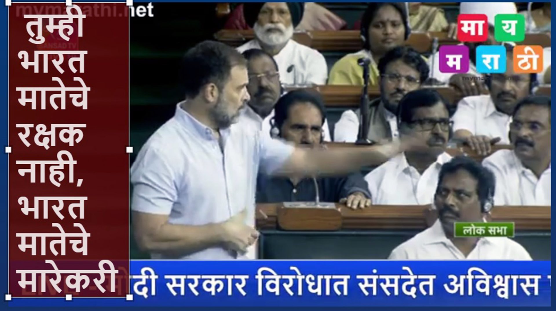 राहुल गांधींच्या भाषणादरम्यान लोकसभा अध्यक्ष ओम बिर्ला यांनी राहुल गांधी यांना म्हटले की, भारतमाता आपली आई आहे, त्यामुळे आपल्याला सभागृहात बोलताना संयम बाळगायला हवा. त्यावर उत्तर देत राहुल गांधी म्हणाले, मी मणिपूरमध्ये आईच्या हत्येबाबत बोलत आहे, मी आदरानेच बोलत आहे. माझी एक आई इथे बसली आहे, तर दुसऱ्या आईची तुम्ही मणिपूरमध्ये हत्या केली आहे. हिंसाचार संपत नाही तोपर्यंत तुम्ही रोज माझ्या आईची तिथे हत्या करत आहात.