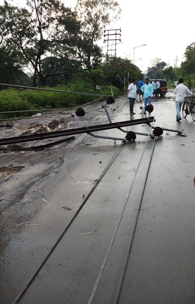 याबाबत माहिती अशी की, बंडगार्डन विभाग अंतर्गत हडपसर इंडस्ट्रीयलमधील हेन्ले 22 केव्ही उपकेंद्रातून रामटेकडी, सेंट मेरी, हेन्ले 1 व 2 अशा 22 केव्हीच्या 4 ओव्हरहेड वाहिन्यांद्वारे हडपसर गाव, हडपसर मार्केट, साडेसतरानळी, सातववाडी, शिंदेवस्ती, रामटेकडी, सोलापूर रोड, मगरपट्टा रोड, बी.टी. कवडे रोड आदी परिसरात वीजपुरवठा केला जातो. आज दुपारी 2 वाजताच्या सुमारास वादळ व मुसळधार पाऊस यामुळे या चारही वीजवाहिन्यांवर अनेक ठिकाणी झाडे व फांद्या कोसळल्या. वीजवाहिन्यांवर ताण आल्याने वीजवाहिन्यांवरील 16 वीजखांब जमीनदोस्त झाले. त्यामुळे वीजपुरवठा खंडित झाला. महावितरणचे अभियंता व कर्मचार्यांनी तातडीने सर्वप्रथम खाली पडलेल्या वीजवाहिन्यांची पाहणी करून त्यात सार्वजनिक सुरक्षेचा धोका नसल्याची खात्री केली आणि पर्यायी व्यवस्थेतून वीजपुरवठा सुरु करण्याचे प्रयत्न सुरु केले. मुख्य अभियंता श्री. एम. जी. शिंदे यांनीही सूचना करून पर्यायी व्यवस्थेतून संबंधीत परिसरात वीजपुरवठा सुरु करण्याचे निर्देश दिले व कोसळलेले वीजखांब व वाहिन्या उभारण्यासाठी तातडीने काम सुरु करण्यास सांगितले.
