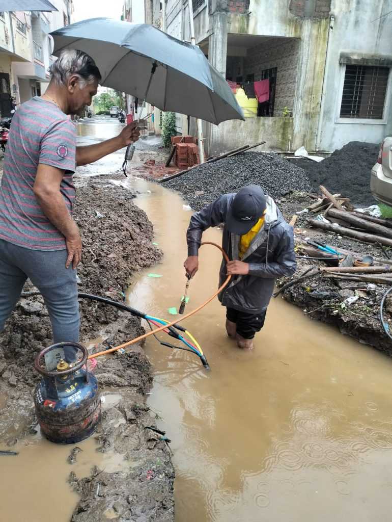 भर पावसातही अविश्रांत दुरुस्ती काम- वीजपुरवठा खंडित झाल्यानंतर वीजपुरवठा कधी पूर्ववत होईल याची ग्राहकांना प्रतीक्षा असते. मात्र अत्यंत खडतर परिस्थितीत रात्री देखील सुरळीत वीजपुरवठ्याला सर्वोच्च प्राधान्य देणाऱ्या महावितरणच्या प्रकाशदूतांची कामगिरीची माहिती नसते. वीजपुरवठा खंडित झाल्यानंतर सर्वप्रथम प्राथमिक चाचणी घेतली जाते. त्यामधून वीज सुरळीत झाली नाही तर पर्यायी व्यवस्थेतून वीजपुरवठा सुरु केला जात आहे. मात्र पर्यायी व्यवस्था नसल्यास दोष आढलेल्या ठिकाणी खोदकाम करणे, केबलमधील आर्द्रता काढणे, जॉईंट देणे आदी कामे करावी लागत आहेत. काही ठिकाणी पाणी साचल्यामुळे पाण्याचा उपसा करून ही कामे करावी लागत आहेत. मात्र भूमिगत वीजवाहिनी कॉन्क्रीट रस्त्याखाली किंवा रस्त्याची उंची वाढल्याने खूप खोल असल्यास वेगळी वीजवाहिनी टाकून वीजपुरवठा सुरु करण्यास प्राधान्य देण्यात येत आहे.तसेच उपरी वीजवाहिन्यांवर झाडे किंवा फांद्या पडल्यास ती बाजूला करणे, वीजतार नवीन टाकणे, पीन किंवा डिस्क इन्सूलेटर बदलणे आदी कामे करण्यात येत आहेत. ही कामे करताना कधी अत्यंत अडचणीच्या ठिकाणी किंवा साचलेल्या किंवा प्रवाह सुरु असलेल्या पावसाच्या पाण्यात उतरून अभियंते व जनमित्र करीत आहेत. दुरुस्ती कामांमध्ये महिला अभियंता व कर्मचारी देखील भर पावसात कर्तव्य बजावत आहेत.