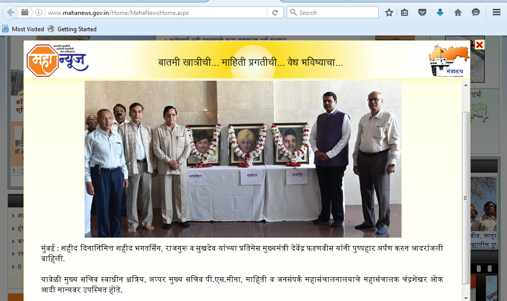 मुंबई : महाराष्ट्रातील मंत्रालयातील कर्मचाऱ्यांना अक्षरशः क्रांतीकारकांची देखील नीटशी ओळख राहिली नसल्याची घटना काल पुढे आली भगत सिंग यांचा मुळ फोटोला सुखदेव यांचे नाव देवून त्यांनी हे स्पष्ट करून दाखविले म्हणजे इथे भगतसिंग यांचे २ फोटो लावले एकाला भगतसिंग आणि दुर्या भगतसिंगच्या प्रतिमेला सुखदेव मानून. सुख्देव्चा फोटो लागलाच नाही . विशेष म्हणजे मुख्यमंत्री देवेंद्र फडणवीस यांनी या प्रतिमांचे डोळे झाकून पूजन केल्याचे निष्पन्न झाले आहे . अर्थात त्यांनी आदरांजली वाहिली पण हा फरक त्यांच्या हि लक्षात कसा आला नाही हे कोडे आहेच . एवढेच नव्हे तर अशाच फोटोसह राज्यशासनाच्या ‘महान्युज ‘ ने देखील बातमी लावली . अजब रे बाबा देवेन्द्रा … तुझ्या सरकारचा कारभार … असेच आता म्हणायची वेळ आली आहे .