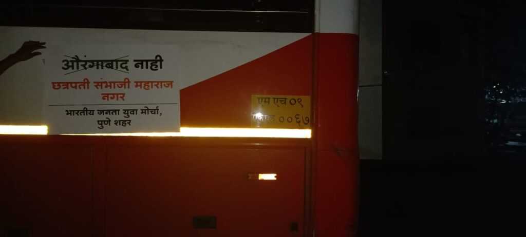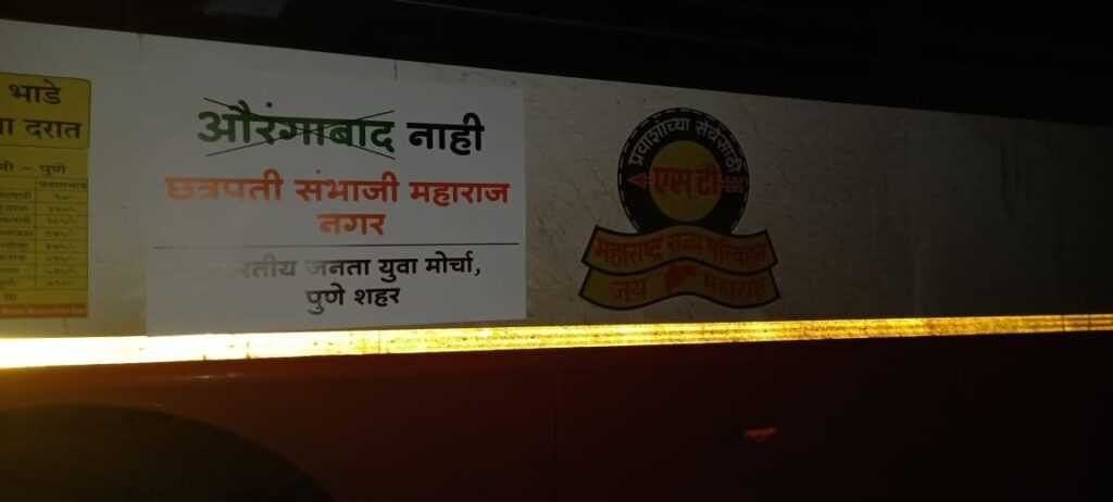 याच पार्श्वभूमीवर भारतीय जनता युवा मोर्चा पुणे राज्य परिवहन विभागाच्या बसेस तसेच खासगी बसेस वर औरंगाबाद नाही छत्रपती संभाजी महाराज नगरच हे पोस्टर्स लाऊन आंदोलन करण्यात आले.